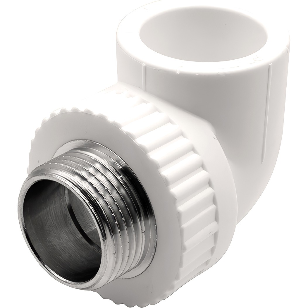 Угольник с наружной резьбой. Используется для соединения под углом 90° трубы PPR с резьбовым фитингом с внутренней резьбой.