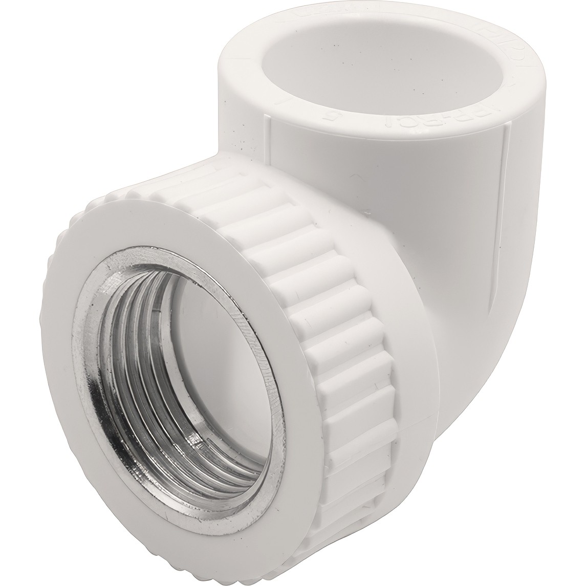Уголок с внутренней резьбой используется для соединения под углом 90° трубы PPR с резьбовым фитингом с наружной резьбой.