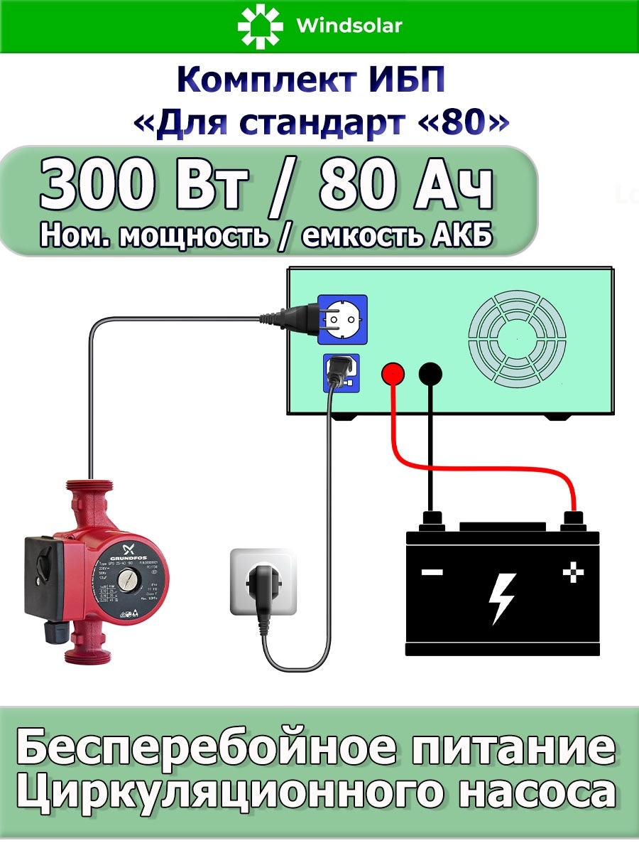 Источник бесперебойного питания (ИБП) мощностью 300 Вт вместе с аккумуляторной батареей 80Ач – это решение для поддержания стабильной работы вашего циркуляционного насоса в системе отопления.
