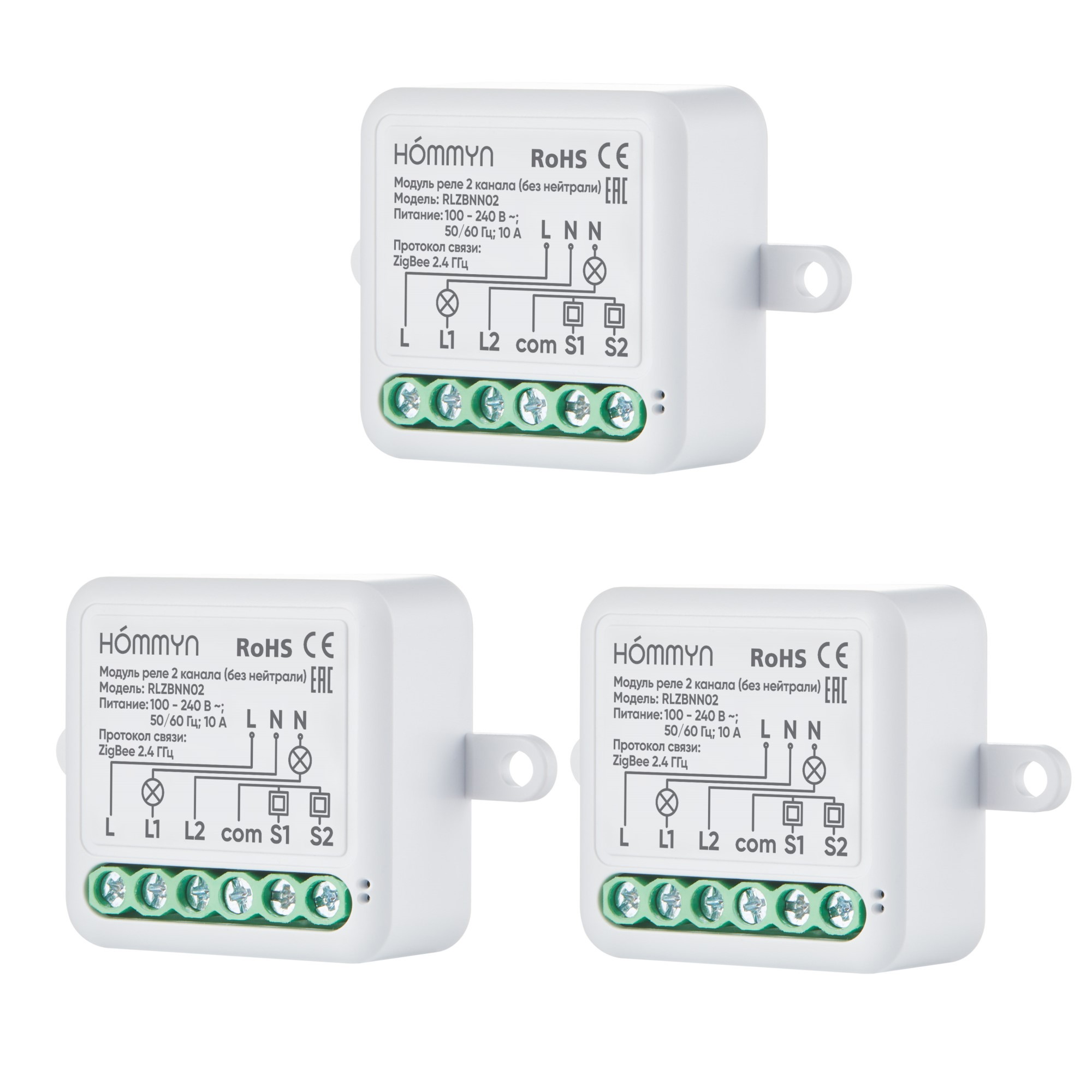 Умное реле – это надежное устройство, предназначенное для создания умного домашнего окружения. Двухканальное умное реле позволяет «прокачать» ваш любимый домашний «неумный» двухклавишный выключатель, делая его умным, не меняя его оригинальные функции и внешний вид. Компактный размер реле позволяет провести его монтаж в стандартный круглый подрозетник, спрятав его в стене за выключателем. Для подключения требуется только питающая линия L (фаза), а нулевая линия N (нейтраль) не требуется. Умное реле позволяет не только управлять включением и выключением освещения или прибором с кнопки вашего оригинального выключателя, но также добавляет возможность удаленного управления через приложение или с помощью голосовых помощников Алиса, Салют, Маруся. Реле поддерживает передачу данных по беспроводному протоколу Zigbee 3.0. Реле Hommyn работает с приложениями умного дома: Hommyn, Tuya Smart life, Home Assistant, Дом с Алисой, Салют умный дом. Для подключения к приложению требуется zigbee хаб. Для подключения к приложению Hommyn требуется оригинальный zigbee хаб HOMMYN Hub HH-01. Выбирая реле Hommyn, вы получаете качественное и надежное устройство, которое повысит уровень вашего комфорта и безопасности.