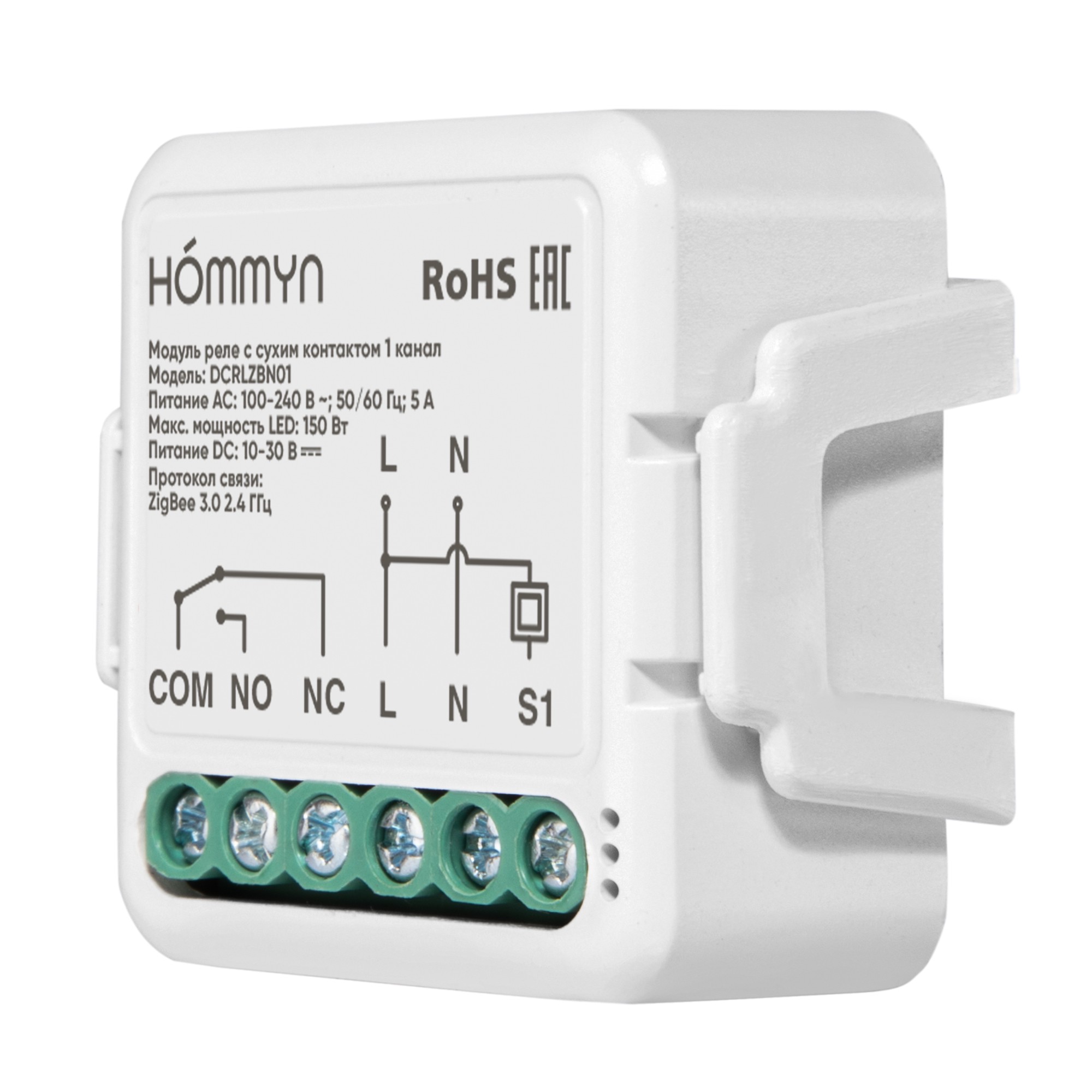 Умное реле – это надежное устройство, предназначенное для создания умного домашнего окружения. Умное реле Hommyn с сухим контактом предназначено для управления питанием контроллеров котлов, гаражных ворот, шлагбаумов, а также розеток, светильников, LED-лент, термостатов теплого пола, фазных и не фазных моторов, и прочее. Таким образом умное реле позволяет «прокачать» ваши любимые домашние «неумные» приборы, делая их умными, не меняя их оригинальные функции и внешний вид. Компактный размер реле позволяет провести его монтаж в стандартный круглый подрозетник, спрятав его в стене за выключателем. Для подключения требуется питающая линия L (фаза) и нулевая линия N (нейтраль). Умное реле подключается к питанию приборов как с высоким напряжением, так и с низким, диапазон напряжения от 10 до 240 В. Умное реле добавляет возможность удаленного управления подключенным прибором через приложение или с помощью голосовых помощников Алиса, Маруся, Салют, а также автоматически по таймеру или расписанию в приложении. Реле Hommyn поддерживает передачу данных по беспроводному протоколу zigbee 3.0. Реле Hommyn работает с приложениями умного дома: Hommyn, Tuya Smart life, Home Assistant, Дом с Алисой, Салют умный дом. Для подключения к приложению требуется zigbee хаб. Для подключения к приложению Hommyn требуется оригинальный zigbee хаб HOMMYN Hub HH-01. Выбирая реле Hommyn, вы получаете качественное и надежное устройство, которое повысит уровень вашего комфорта и безопасности.