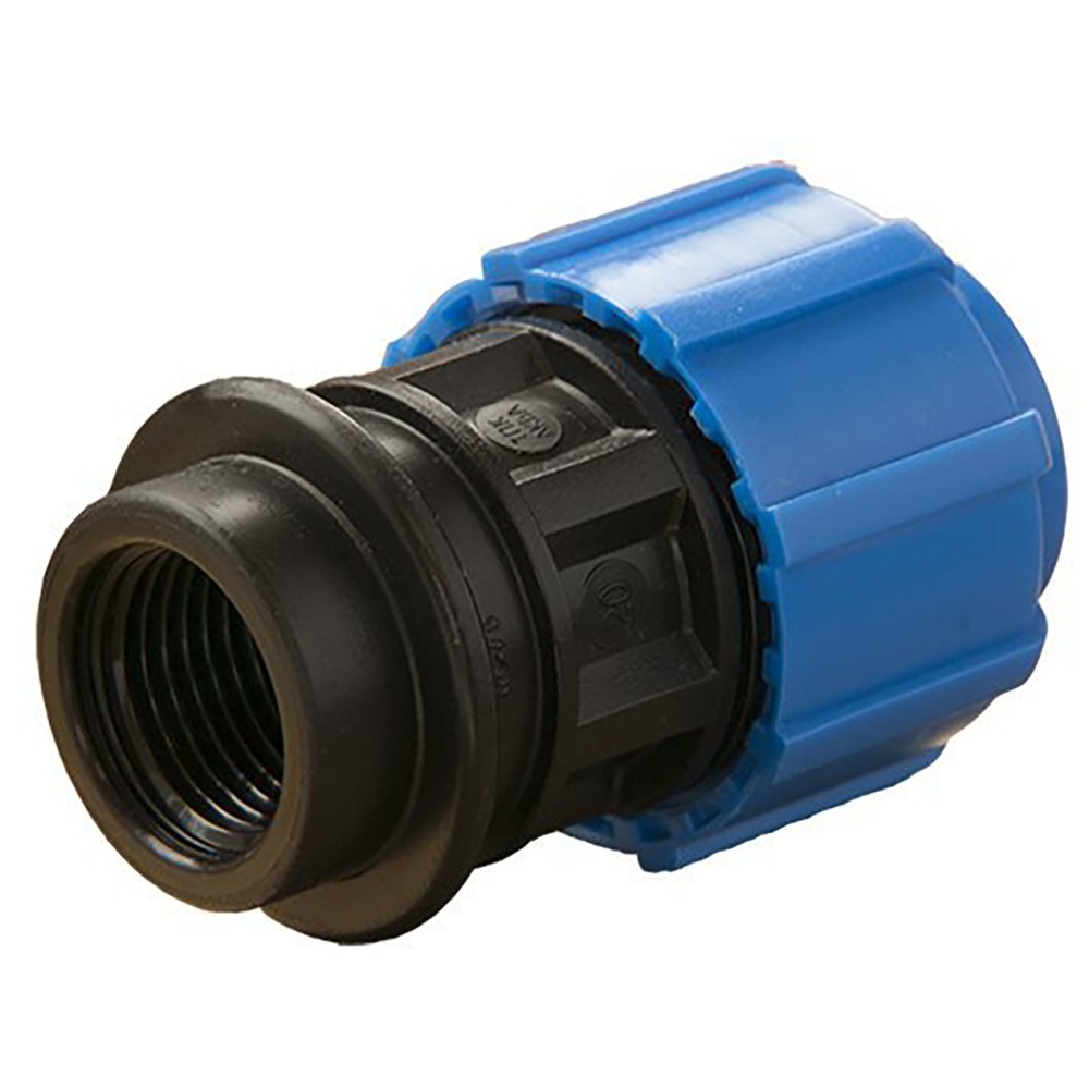 Муфта компрессионная с внутренней трубной резьбой предназначена для соединения стального трубопровода с трубопроводом ПНД-труб. Муфта компрессионная имеет резьбу, соответствующую размерам и стандартам резьбы стальных труб. Такая муфта так же может использоваться в строительстве различных комбинаций отводов и разветвлений с применением других компрессионных ПНД-фитингов.
