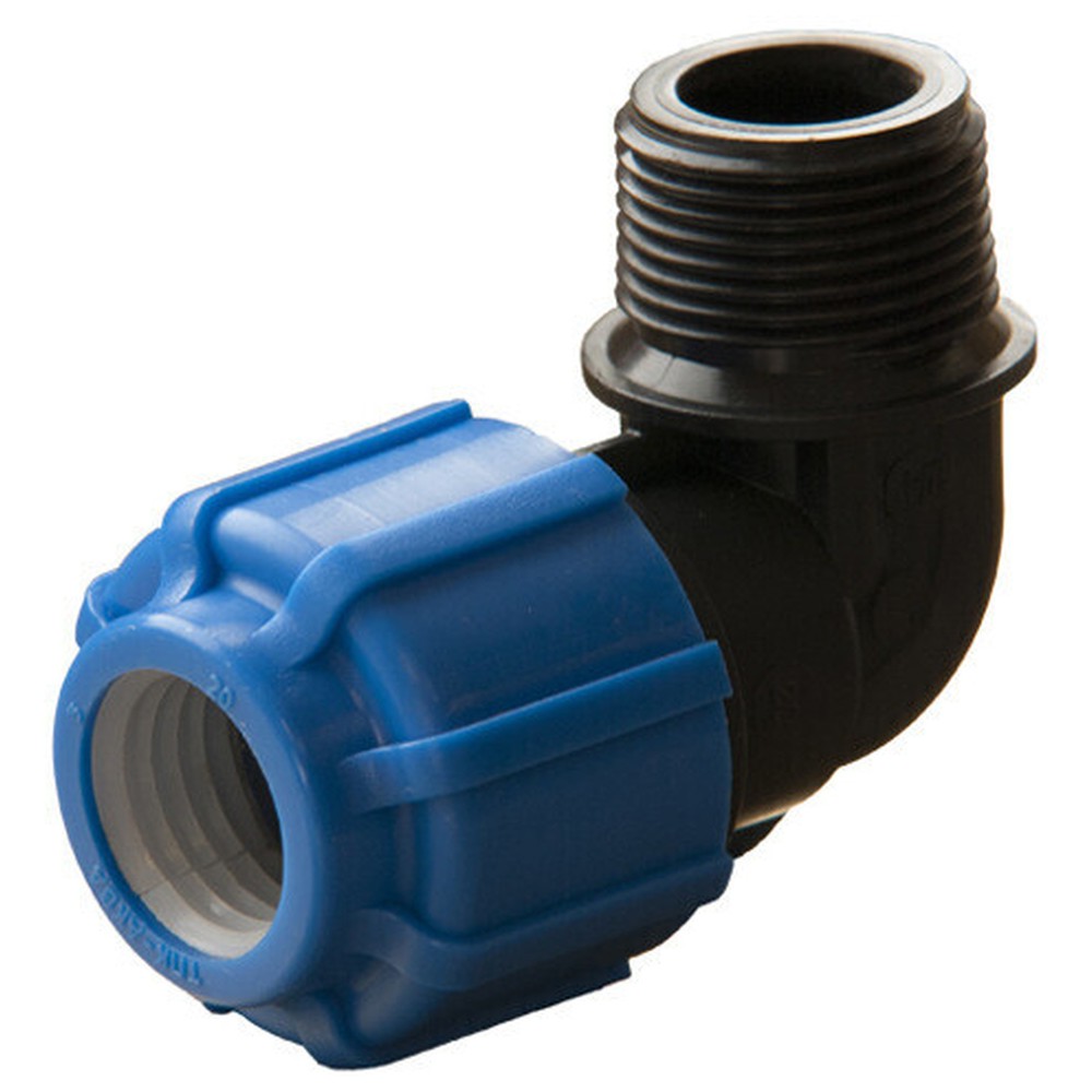 Отвод компрессионный с наружной трубной резьбой предназначен для обеспечения легкого перехода под прямым углом со стального трубопровода системы водоснабжения на трубопровод из ПНД труб.