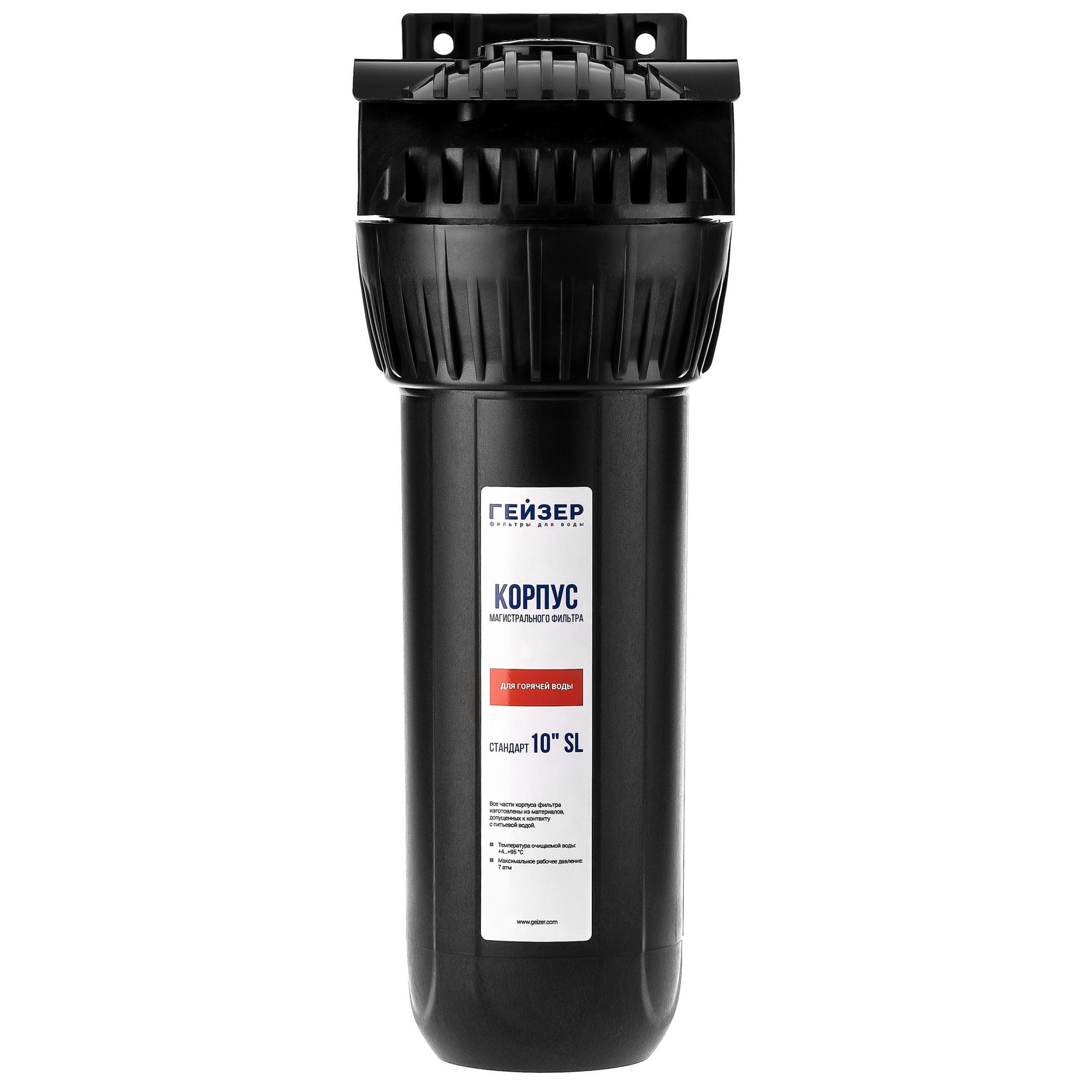 Корпус Гейзер 10SL 3/4" изготовлен из термостойкого полиамида. Корпус рассчитан на работу под давлением и установку на входе в систему горячего или холодного водоснабжения. В производстве корпусов используются материалы пищевого класса.