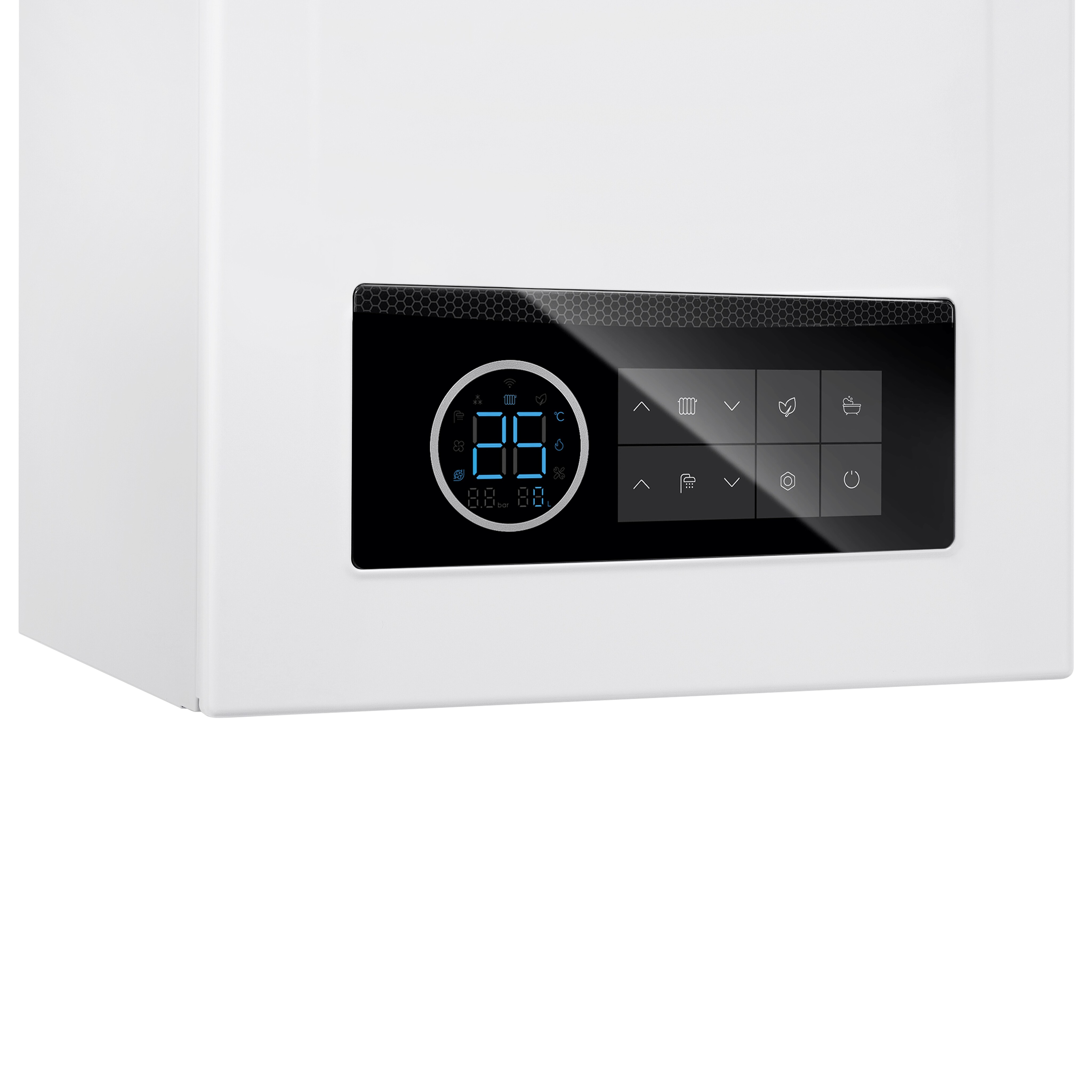 Настенный газовый одноконтурный конвекционный котёл с закрытой камерой сгорания. Отопление и приготовления ГВС, с энергоэффективным циркуляционным насосом с частотным регулированием и автоадаптацией, 3-ходовым клапаном для подключения бойлера косвенного нагрева и датчиком бойлера.