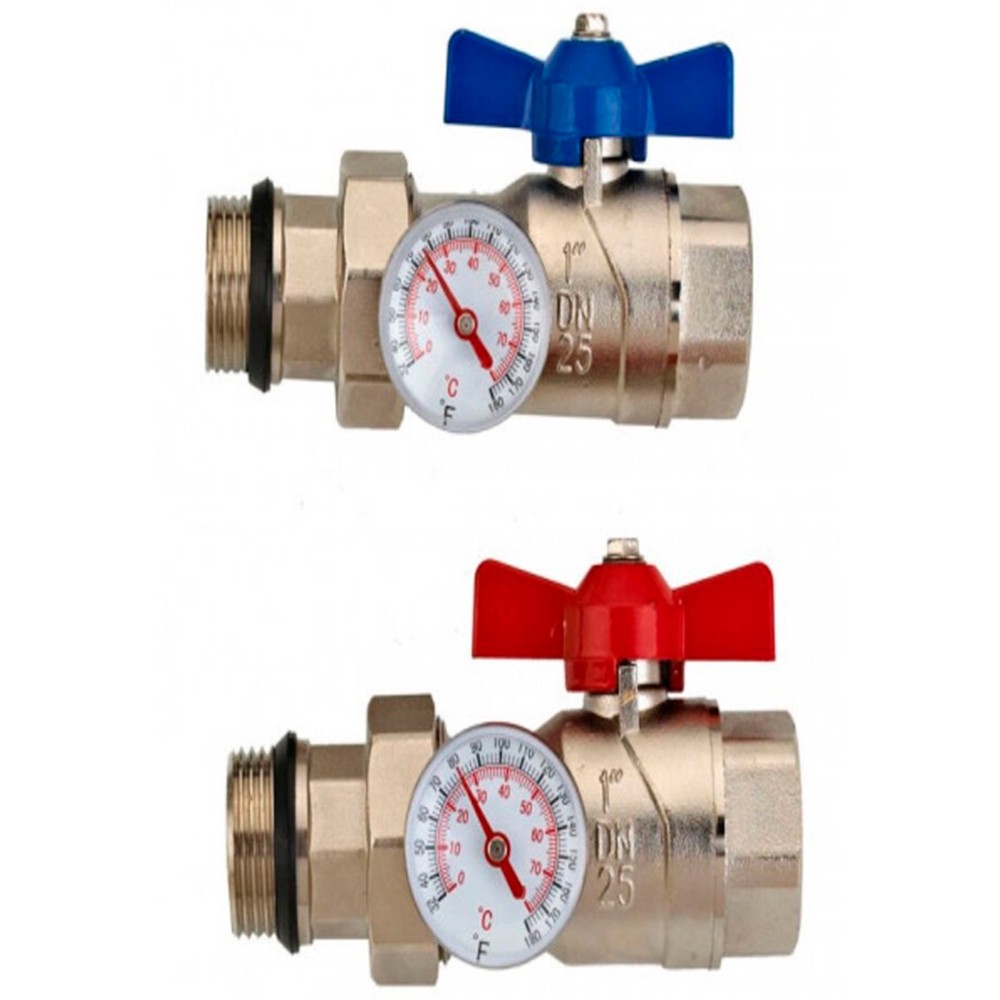 Комплектов из двух кранов шаровых с накидной гайкой и термометрами предназначены для присоединения для перекрытия потока жидкости