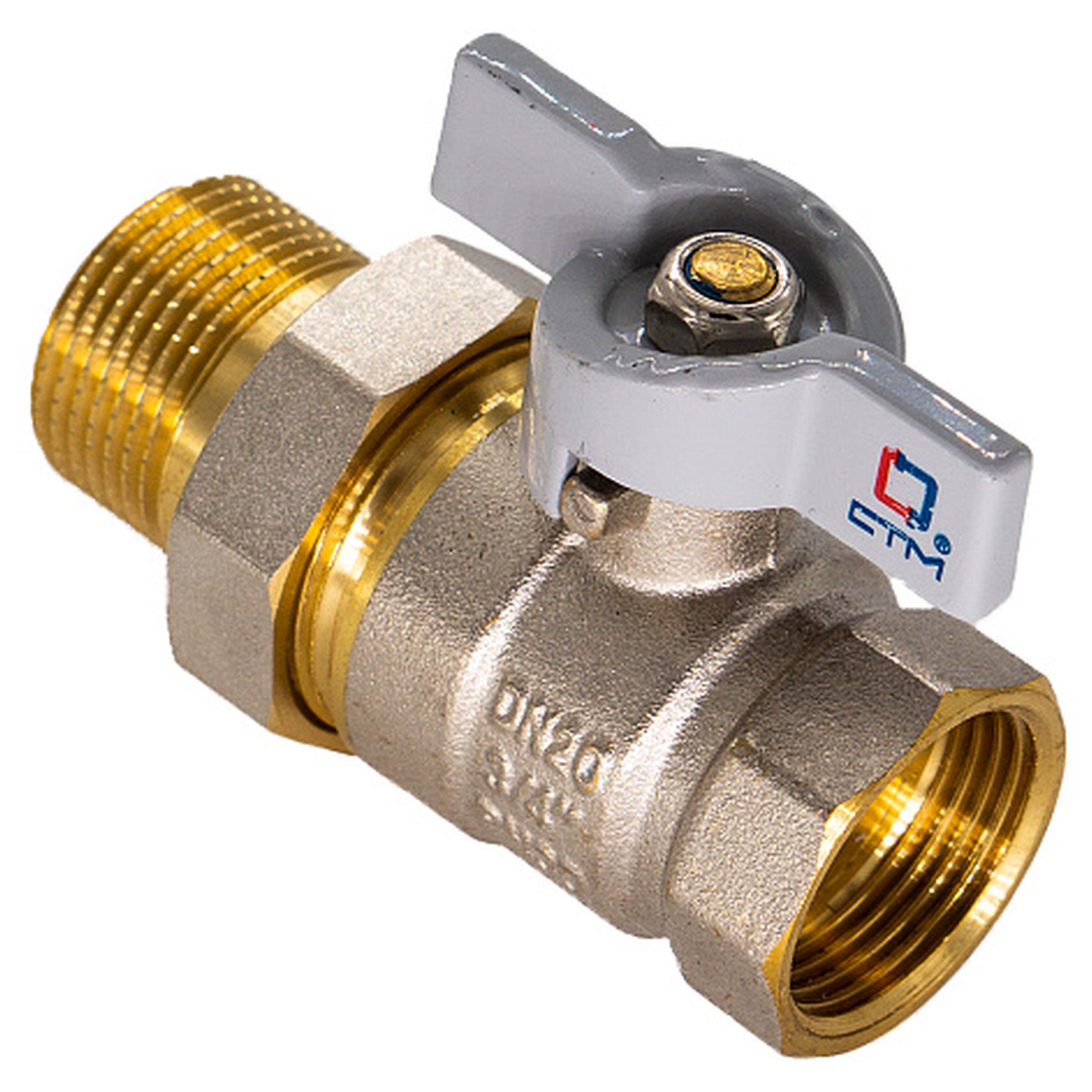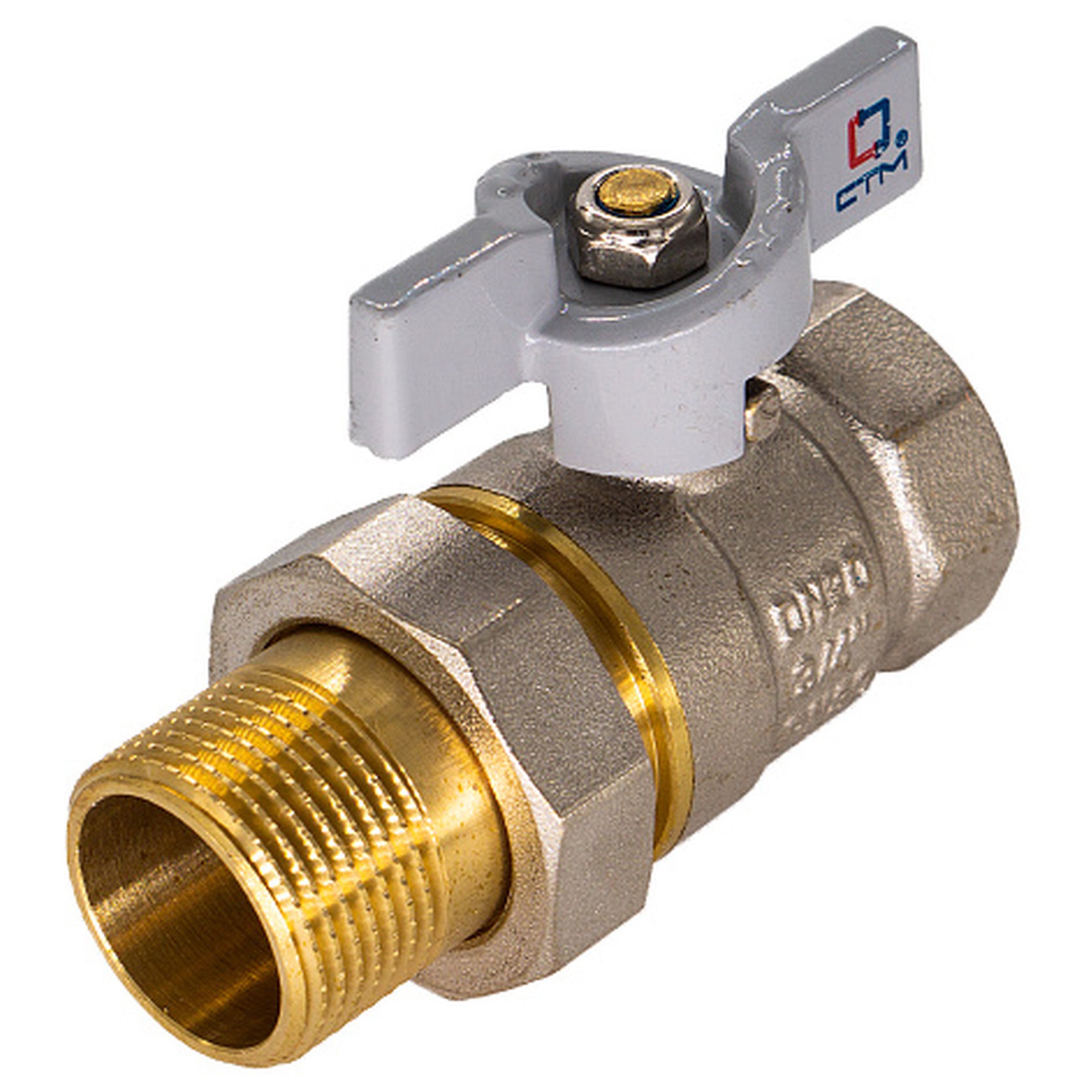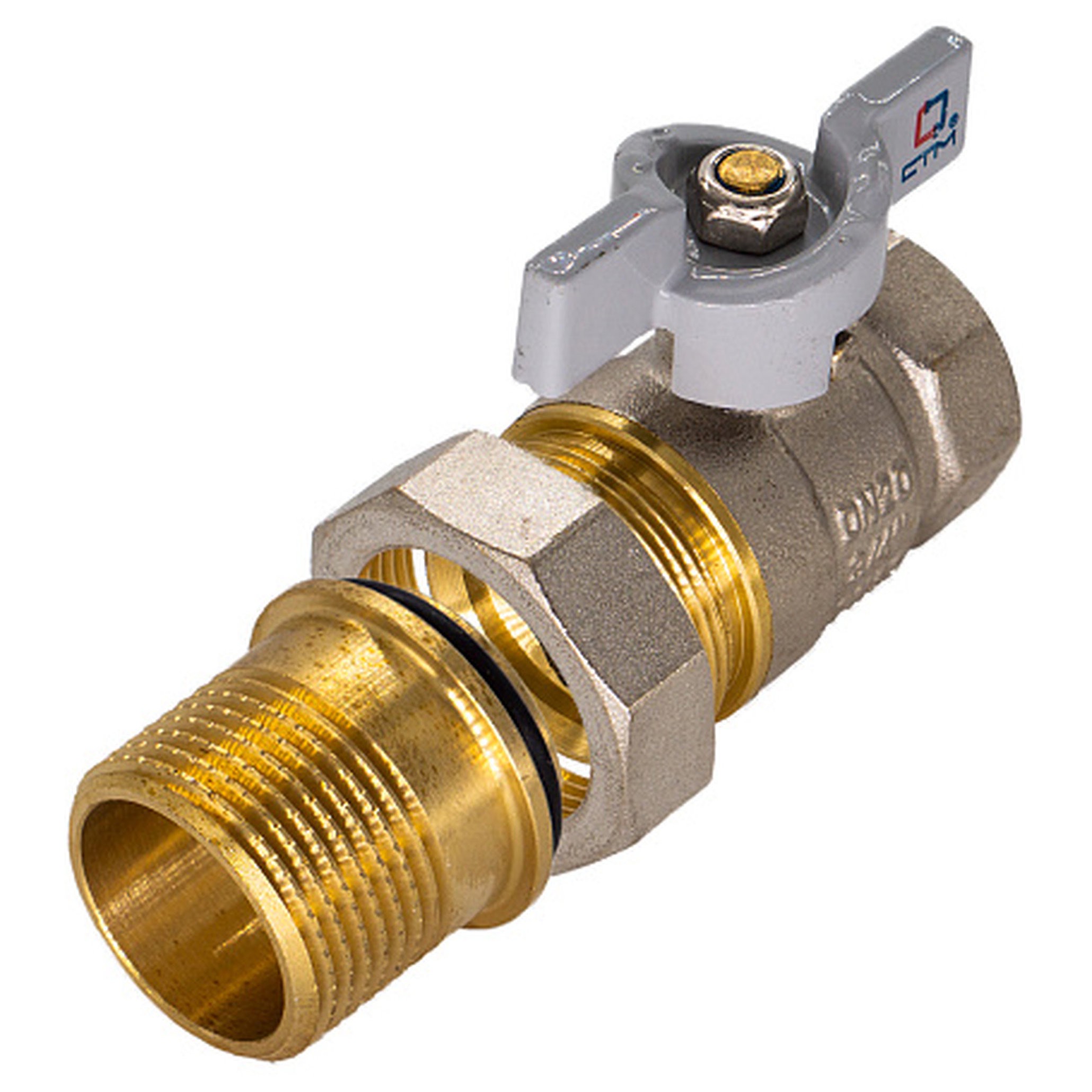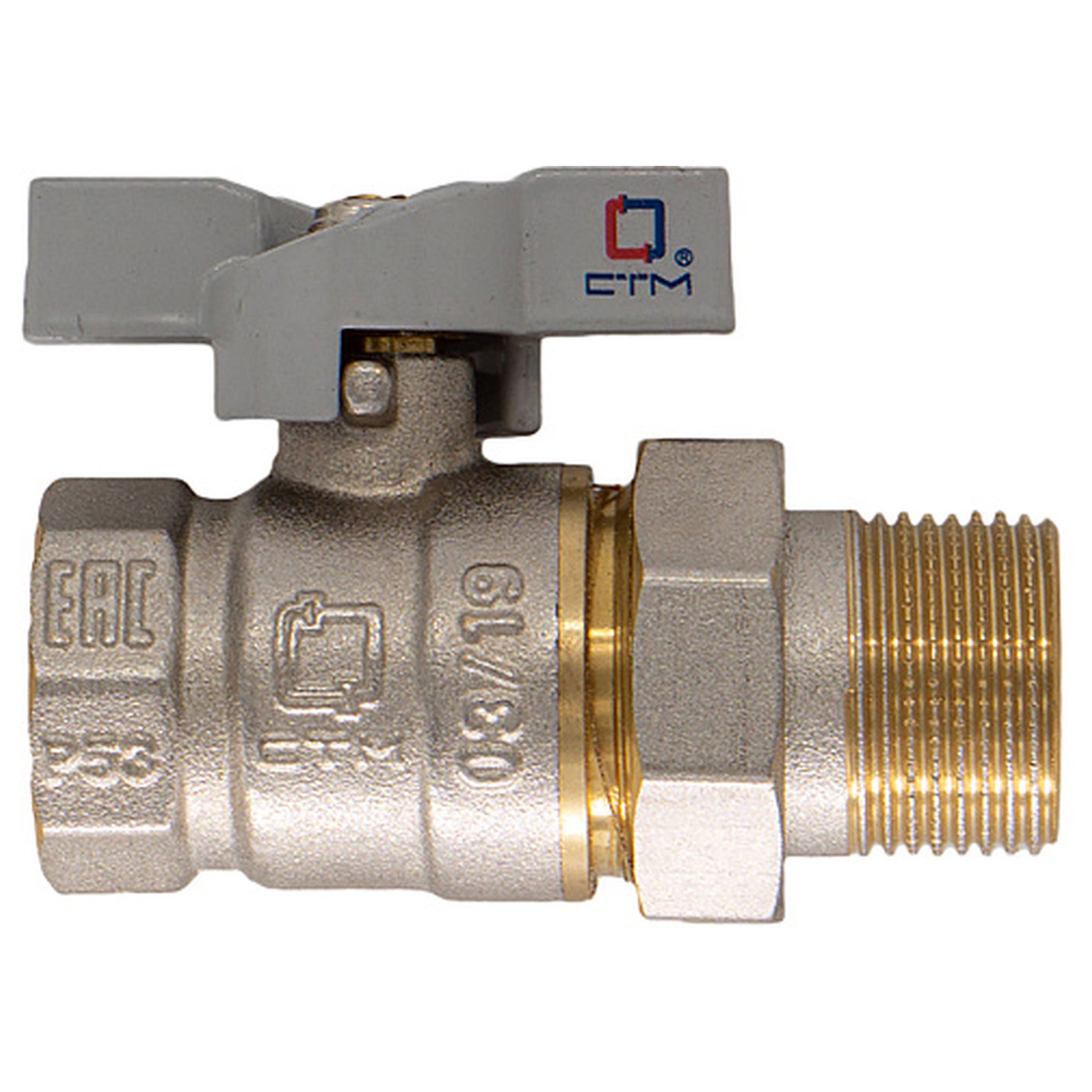 Кран шаровой 1" с накидной гайкой рычаг CTM Стандарт применяется в качестве запорной арматуры на трубопроводах систем питьевого, хозяйственно-бытового и промышленного назначения, систем холодного, горячего водоснабжения и отопления, сжатого воздуха и жидких углеводородах, а также трубопроводах, транспортирующих среды, не агрессивные к материалам крана для обеспечения разбивки трубопровода на отсекаемые ремонтные участки. Особенности конструкции, технологии изготовления, применяемых материалов обеспечивают долголетнюю работу шарового крана СТМ Стандарт при эксплуатации в условиях отечественных инженерных систем. Шаровой кран СТМ Стандарт является полнопроходным и ремонтопригодным. Корпус, шток и накидная гайка крана изготовлен из высококачественной горячепрессованной латуни с никелированным покрытием. Шаровой затвор изготовлен из высококачественной горячепрессованной латуни, отполирован и покрыт хромом. Герметичность затвора крана соответствует наиболее высоком классу по ГОСТу 9544-2005 – А. Наличие тефлоновых седельных колец и сальниковой прокладки позволяет использовать шаровой кран СТМ Стандарт в системах с рабочей температурой до 150ºС. Накидная гайка крана соединяется с ответной наружной резьбой трубопровода или арматуры через плоскую прокладку из резины. Оптимальная длина резьбы обеспечивает надёжное соединение. Кран оснащен ручкой-рычагом из никелированной стали и покрытой серой полимерной оболочкой из ПВХ. Техническое обслуживание крана в течение всего срока эксплуатации не требуется (средний срок службы – 20 лет, средний ресурс наработки на отказ – 35000 циклов). Не требуется применения специального сгонного ключа при монтаже и демонтаже. Монтаж и демонтаж крана производится обычными трубными ключами.