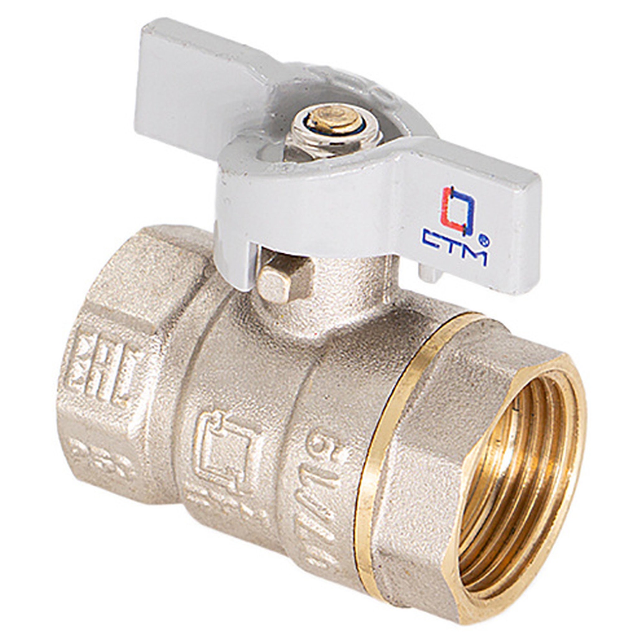 Кран шаровый для воды 1" г/г бабочка CTM Стандарт с внутренней резьбой, ручкой-бабочкой применяется в качестве запорной арматуры на трубопроводах систем питьевого, хозяйственно-бытового и промышленного назначения, систем холодного, горячего водоснабжения и отопления, сжатого воздуха и жидких углеводородах, а также трубопроводах, транспортирующих среды, не агрессивные к материалам крана. Особенности конструкции, технологии изготовления, применяемых материалов обеспечивают долголетнюю работу шарового крана СТМ Стандарт при эксплуатации в условиях отечественных инженерных систем. Шаровой кран СТМ Стандарт является полнопроходным и ремонтопригодным. Корпус и шток крана изготовлен из высококачественной горячепрессованной латуни с никелированным покрытием. Шаровой затвор изготовлен из высококачественной горячепрессованной латуни, отполирован и покрыт хромом. Герметичность затвора крана соответствует наиболее высоком классу по ГОСТу 9544-2005 – А. Наличие тефлоновых седельных колец и сальниковой прокладки позволяет использовать шаровой кран СТМ Стандарт в отопительных системах с рабочей температурой до 150ºС. Оптимальная длина резьбы обеспечивает надёжное соединение. Техническое обслуживание крана в течение всего срока эксплуатации не требуется (средний срок службы – 20 лет, средний ресурс наработки на отказ – 35000 циклов).