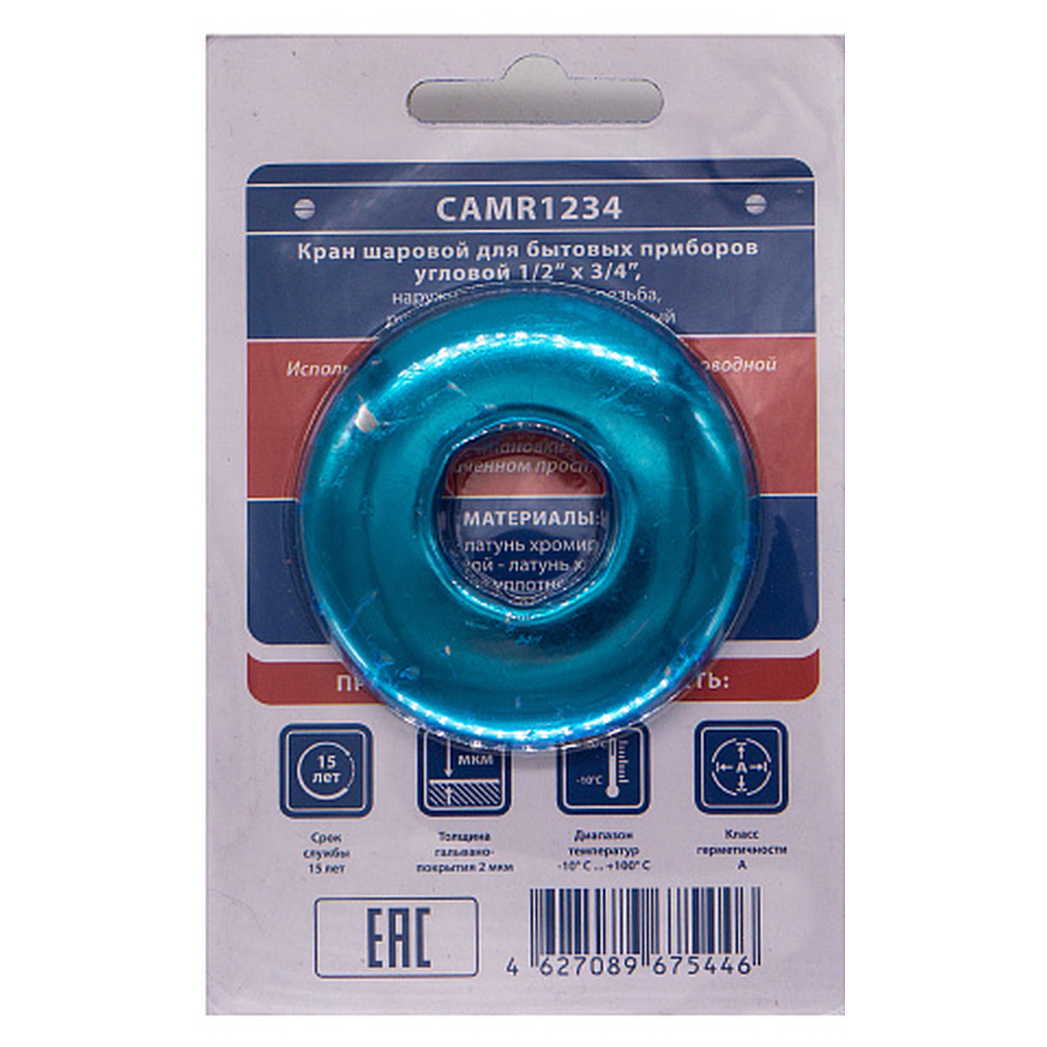 Кран шаровой для бытовых приборов угловой 1/2"х3/4" ш/ш CTM с удлиненной резьбой хромированный применяется для подключения бытовых (стиральные, посудомоечные машины и др.) и сантехнических приборов к системе холодного водоснабжения. Идеален для установки и эксплуатации в ограниченном пространстве. Корпус крана изготовлен из высококачественной горячепрессованной латуни с хромированным покрытием (толщина гальванопокрытия 0 2 мкм). Шаровой затвор изготовлен из высококачественной горячепрессованной латуни, отполирован и покрыт хромом. Герметичность затвора крана соответствует наиболее высоком классу по ГОСТу 9544-2005 – А. Кран оснащен пластмассовой ручкой-бабочкой. В комплекте идёт декоративный отражатель. Техническое обслуживание крана в течение всего срока эксплуатации не требуется (средний срок службы – 15 лет, средний ресурс наработки на отказ – 9000 циклов). Индивидуальная блистерная упаковка содержит всю необходимую техническую информацию.