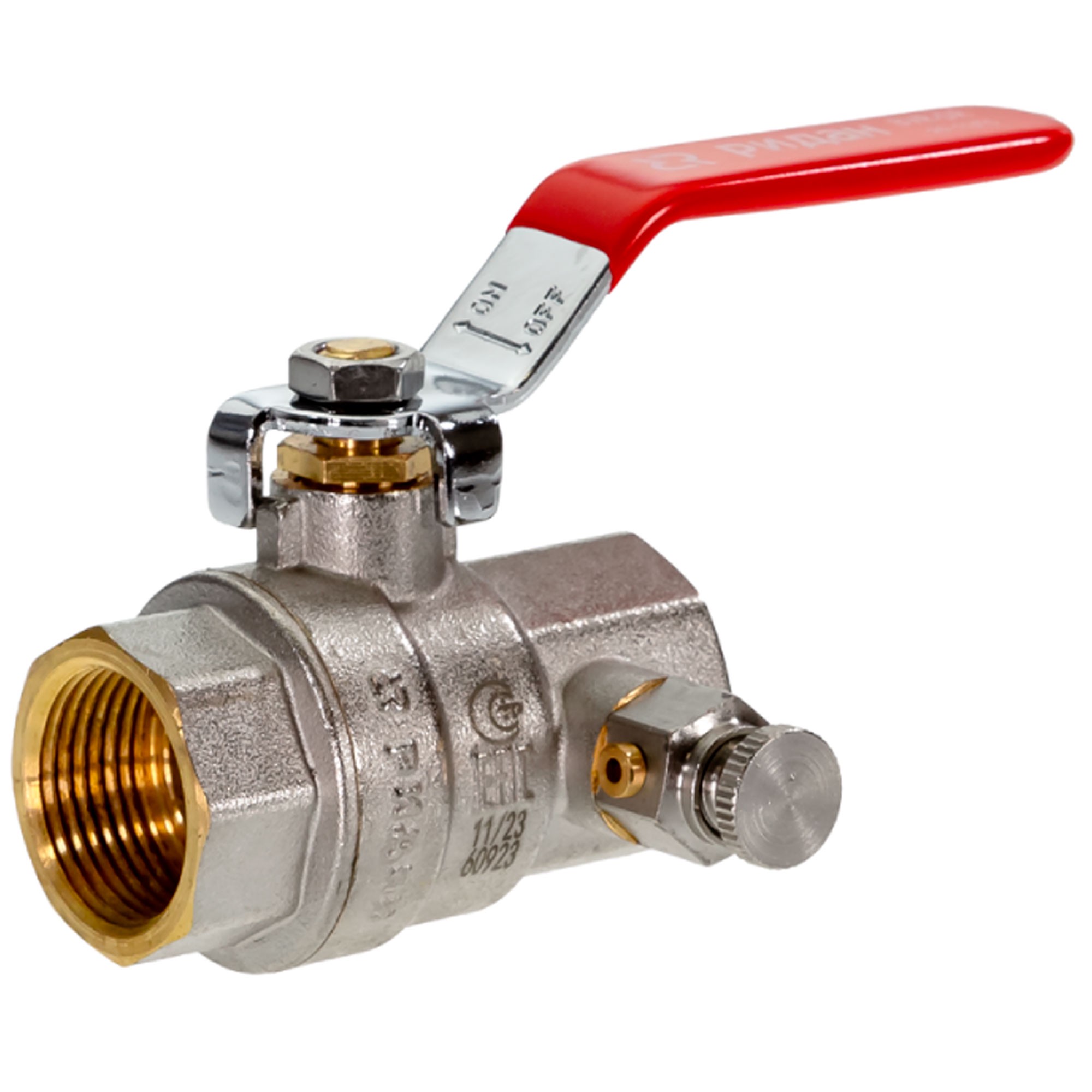 Кран шаровой латунный РИДАН BVR-DR DN32 PN40 с внутренней резьбой и спускным элементом