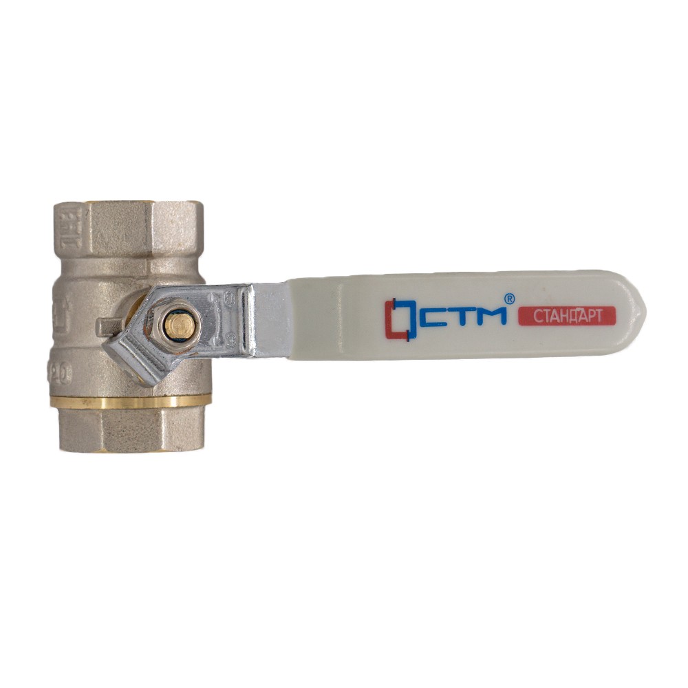 Кран шаровой для воды 1-1/4" CTM СТАНДАРТ с внутренней резьбой, ручкой-рычагом применяется в качестве запорной арматуры на трубопроводах систем питьевого, хозяйственно-бытового и промышленного назначения, систем холодного, горячего водоснабжения и отопления, сжатого воздуха и жидких углеводородах, а также трубопроводах, транспортирующих среды, не агрессивные к материалам крана. Особенности конструкции, технологии изготовления, применяемых материалов обеспечивают долголетнюю работу шарового крана СТМ СТАНДАРТ при эксплуатации в условиях отечественных инженерных систем. Шаровой кран СТМ СТАНДАРТ является полнопроходным и ремонтопригодным. Корпус и шток крана изготовлен из высококачественной горячепрессованной латуни с никелированным покрытием. Шаровой затвор изготовлен из высококачественной горячепрессованной латуни, отполирован и покрыт хромом. Герметичность затвора крана соответствует наиболее высоком классу по ГОСТу 9544-2005 – А. Наличие тефлоновых седельных колец и сальниковой прокладки позволяет использовать шаровой кран СТМ СТАНДАРТ в отопительных системах с рабочей температурой до 150ºС. Оптимальная длина резьбы обеспечивает надёжное соединение. Техническое обслуживание крана в течение всего срока эксплуатации не требуется (средний срок службы – 20 лет, средний ресурс наработки на отказ – 35000 циклов).