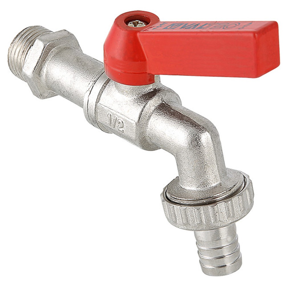 (VT.051.N) Латунный никелированный кран, применяемый в качестве запорной арматуры на трубопроводах систем водоснабжения (в том числе питьевого) с рабочей температурой до 75 °С при номинальном давлении 16 бар. Наличие съемного штуцера с накидной гайкой дает возможность производить его замену в зависимости от диаметра и материала применяемого шланга. Рассекатель обеспечивает формирование компактной струи на изливе. Кран оснащен алюминиевой рукояткой флажкового типа. Резьба присоединения – наружная. Неремонтопригодный. Средний полный ресурс – 8 тыс. циклов.