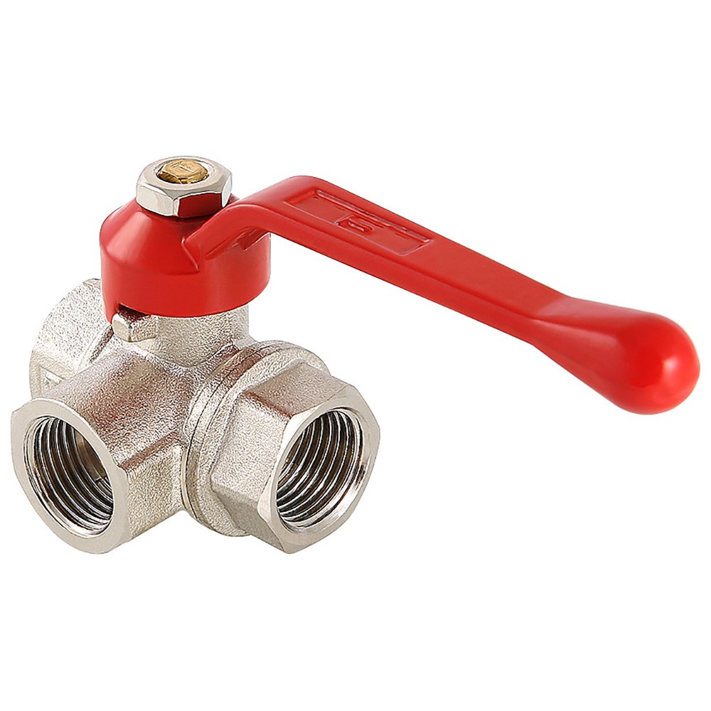 (VT.361.N) Латунный никелированный трехходовой кран, обеспечивающий изменение потока в трубопроводах систем водоснабжения, отопления, технологических установок. Ремонтопригоден, оснащен шаровым затвором с T-образным каналом, тефлоновыми (PTFE) седельными кольцами и сальниковым уплотнением, флажковой рукояткой из алюминиевого сплава. Минимальный ресурс крана – 20 тыс. циклов. Максимальная температура рабочей среды – 150 °С. Резьба всех присоединений – внутренняя.