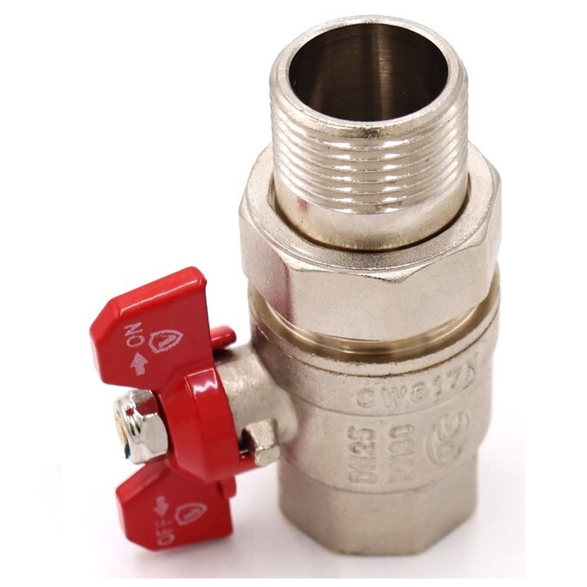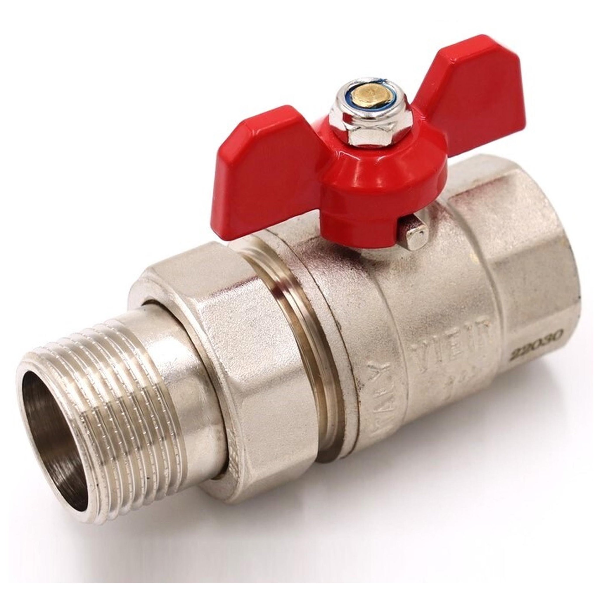 ViEiR шаровой кран со сгоном НР-ВР бабочка (красн) 1" (48/6/1) VR204-03. Кран с Американкой отличается высокими эксплуатационными и качественными показателями. Время эксплуатации составляет 30 лет или 55000 циклов. Изделие полнопроходное и при необходимости ремонтопригодное.