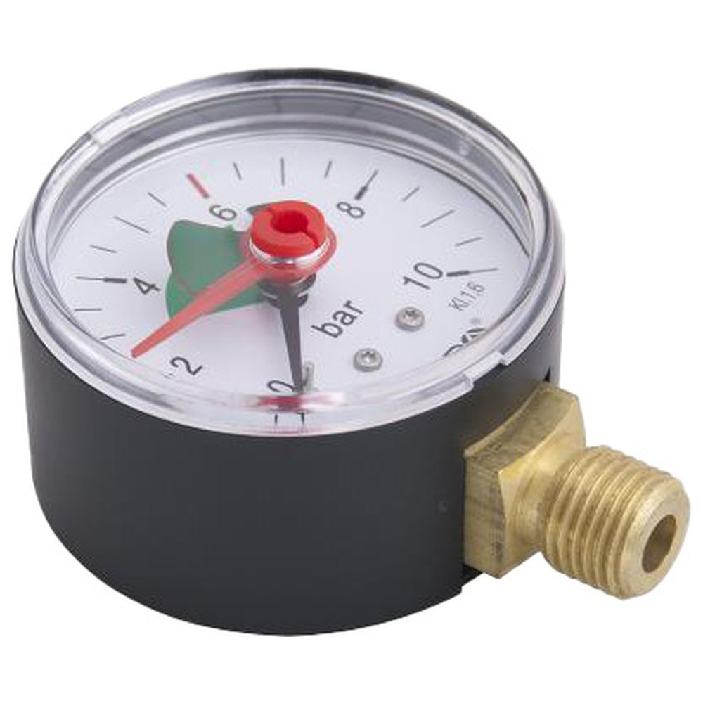 Манометр Gappo радиальный с указателем предела 1/4" x 10 бар — это устройство для измерения давления. Штуцер подключения расположен снизу корпуса, а шкала и стрелка направлены вперед. Такой тип удобен для монтажа в местах, где манометр устанавливается вертикально.
