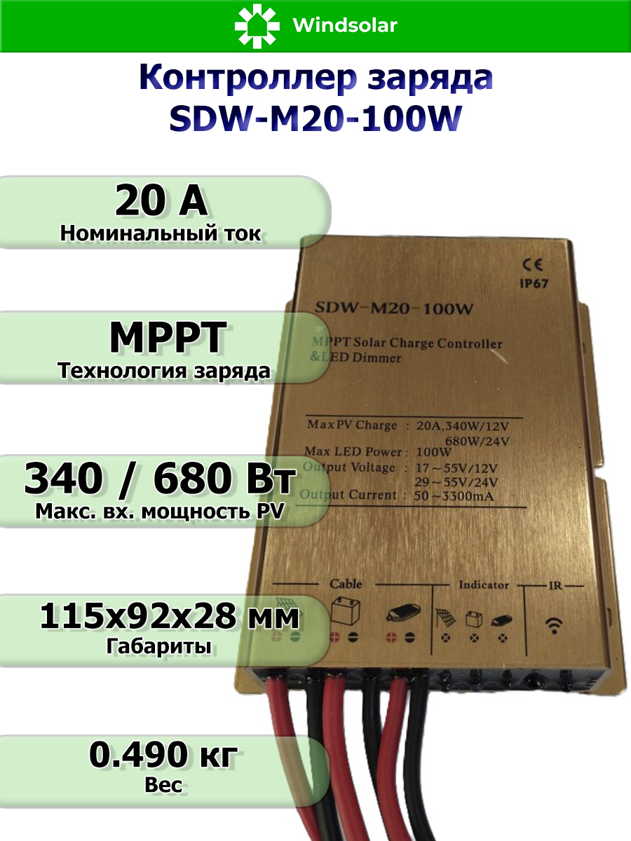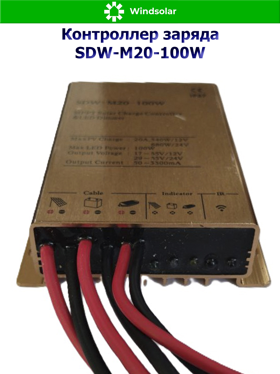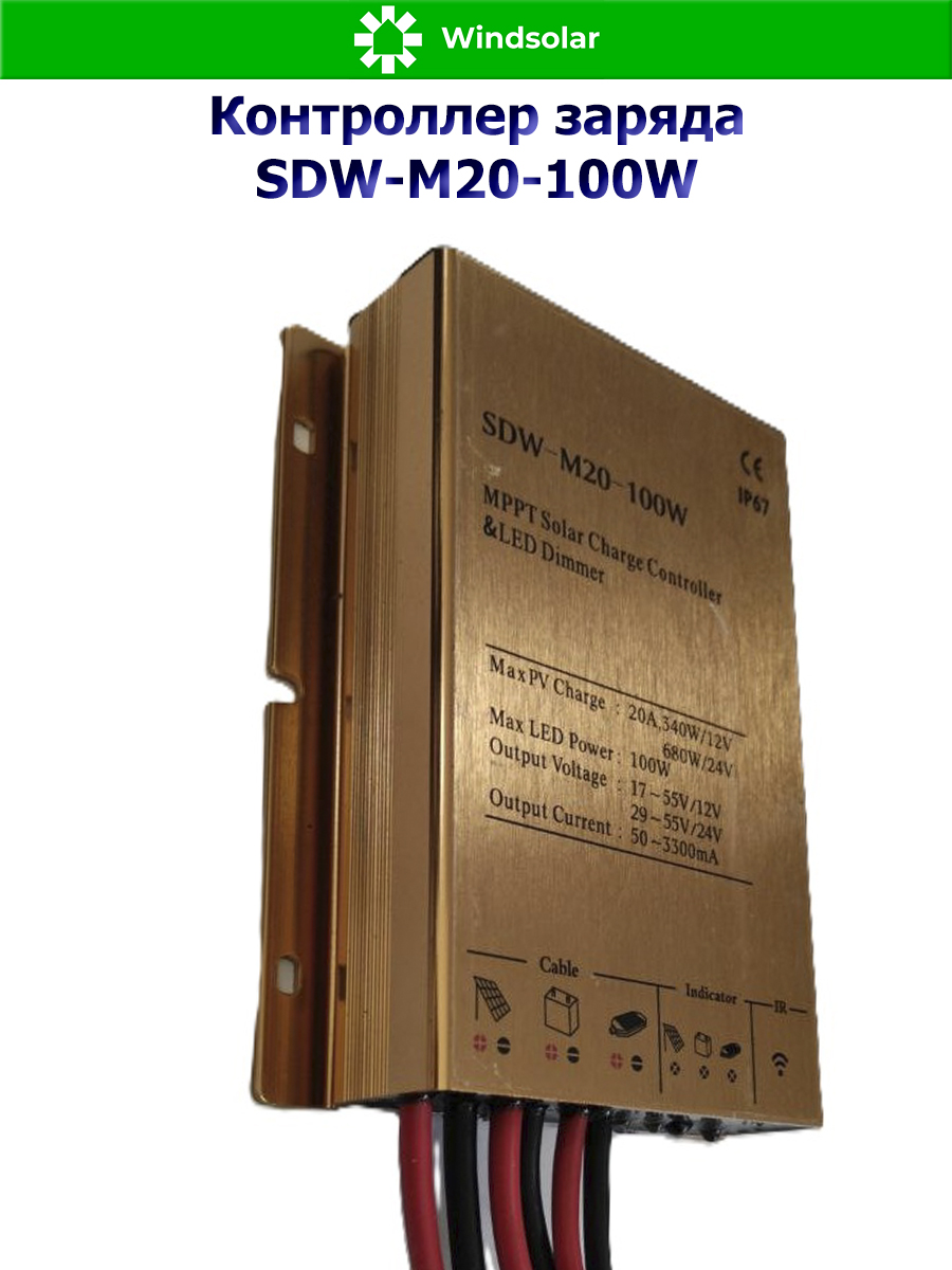 Герметичный контроллер заряда SDW-M20-100W - уникальное в своем роде устройство - помимо стандартных для контроллера заряда функций имеет встроенный LED драйвер с поддержкой источников света до 100Вт, выдает напряжение до 100В и ток до 20 А.