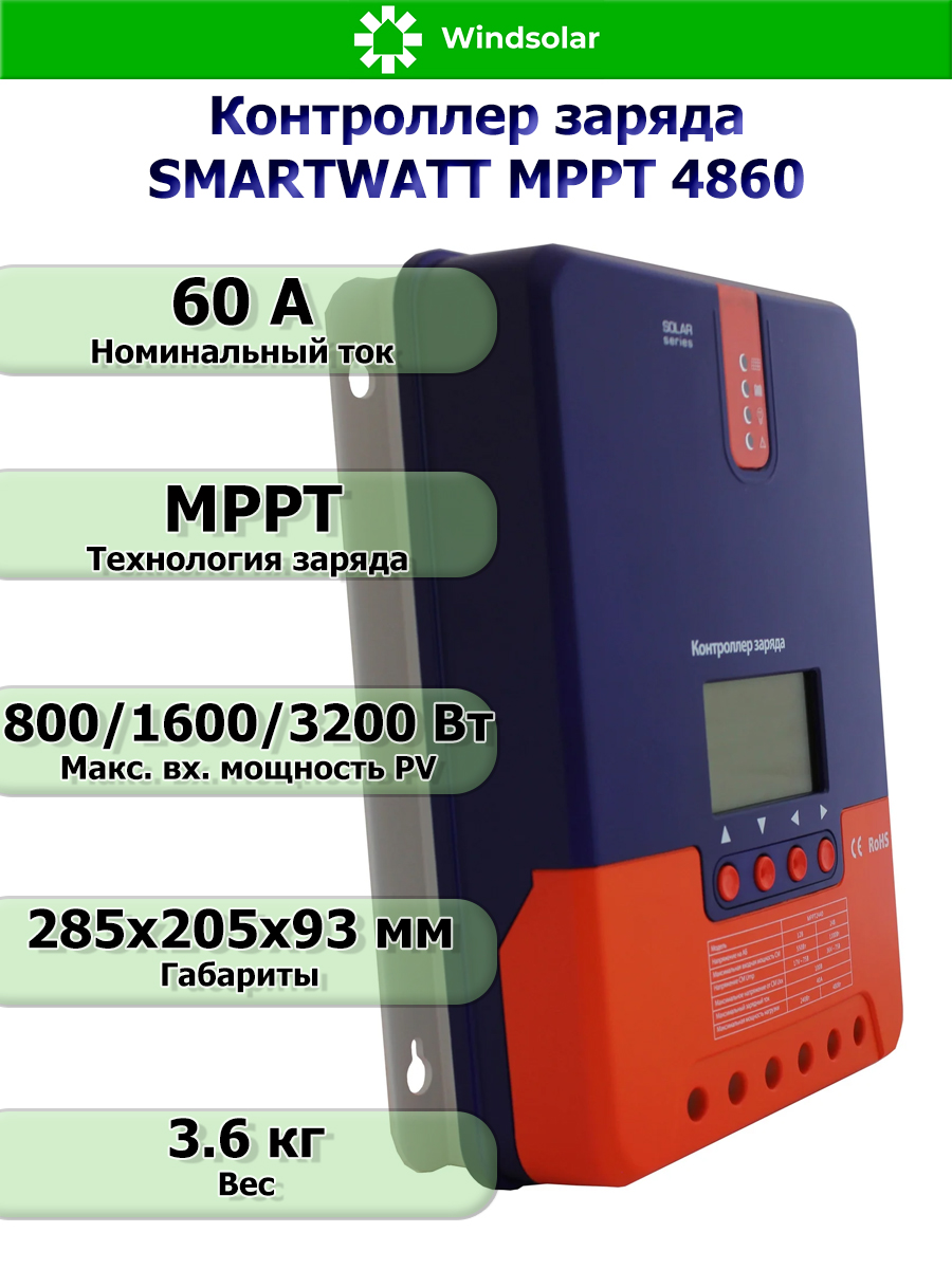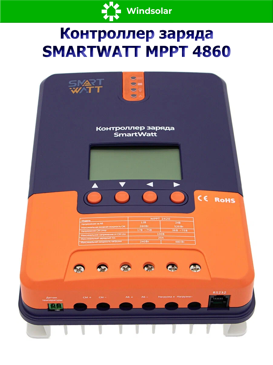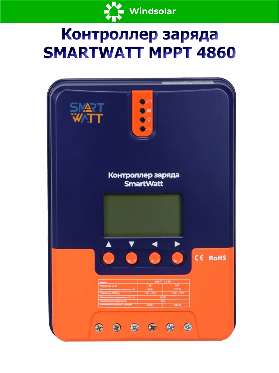 Контроллер заряда SMARTWATT MPPT обеспечивает высокую эффективность использования энергии, надежность и долговечность, что делает его идеальным решением для солнечных энергосистем.