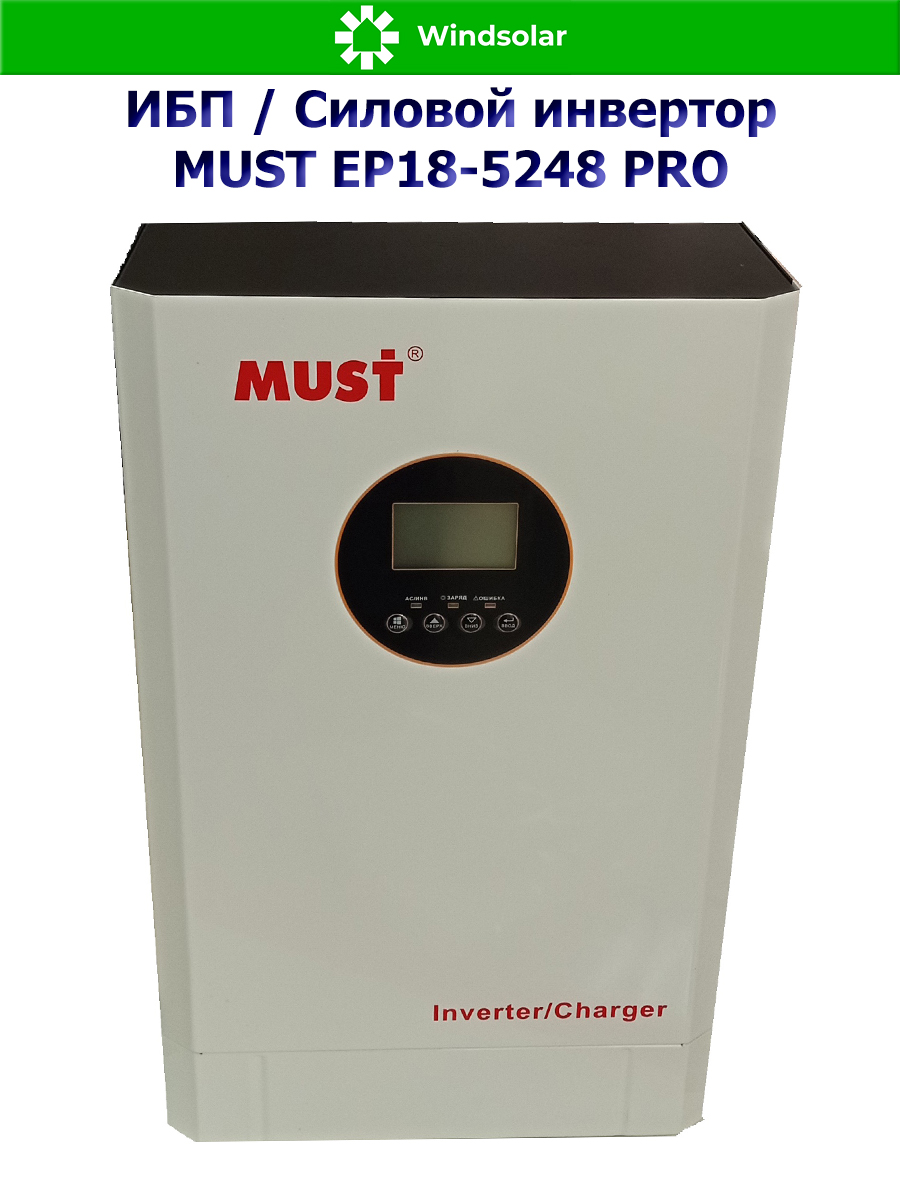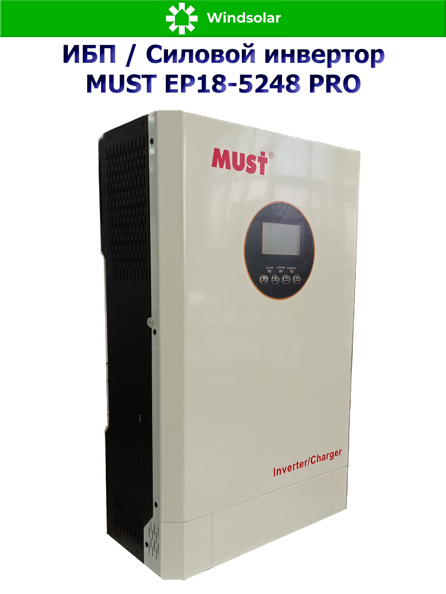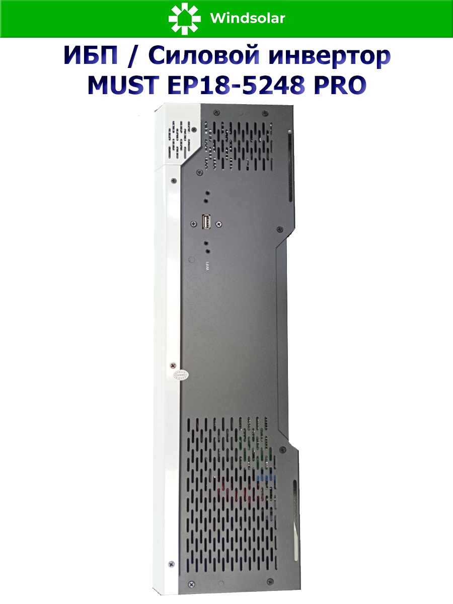MUST EP18-5248 PRO (5,2 кВт, 48 В) – это высокочастотный инвертор/ИБП, обеспечивающий чистую синусоиду и мгновенное переключение между сетью 230 В, генератором и аккумулятором. Идеальное решение для резервного питания в случае отключения электроэнергии, защищая вашу технику и обеспечивая непрерывную работу критически важного оборудования.