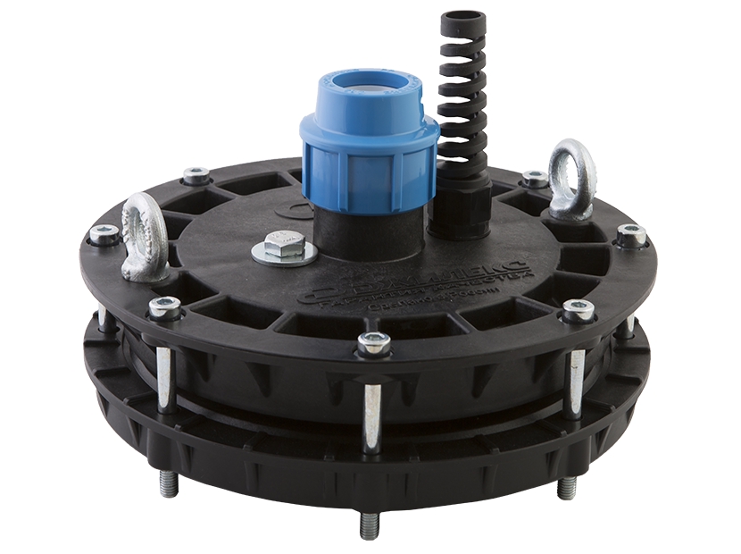 Оголовок скважинный Джилекс ОСП 110-130/32 выполнен из пластика - предназначен для удобства монтажа-демонтажа насоса и герметизации устья скважины с наружным диаметром обсадной трубы от 110 до 130 мм, с установленным внутри нее насосом, напорной трубой ПНД диаметром 32 мм, а также кабелем круглого сечения от 8 до 13 мм.