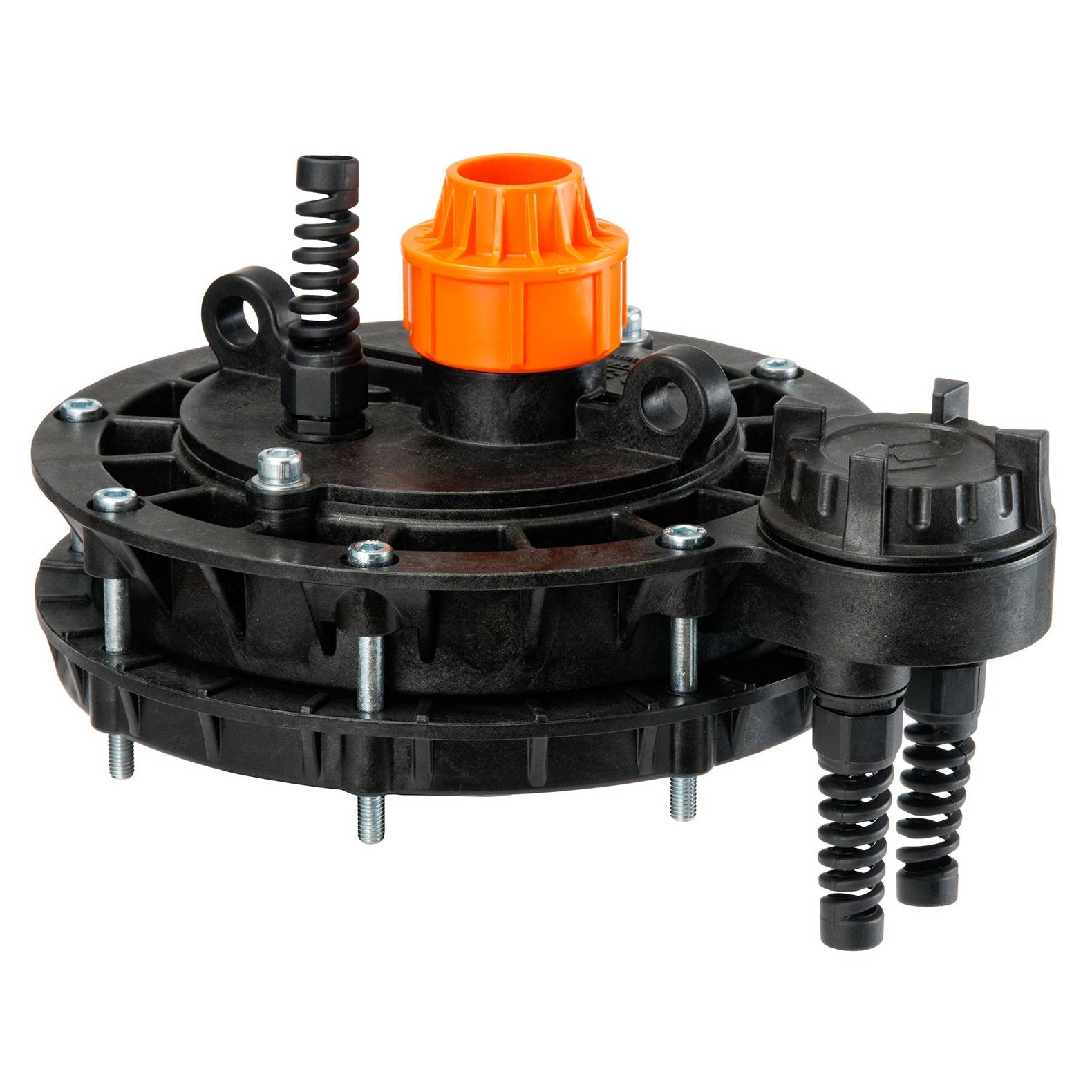 Выбор оголовка зависит от наружного диаметра обсадной трубы от 110 до 160 мм и диаметра полиэтиленовой напорной трубы 25,32 или 40 мм.