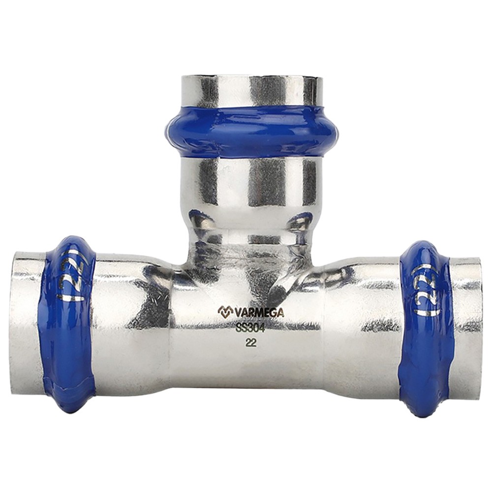 Тройник VARMEGA раструбный Inox Press 22x22x22