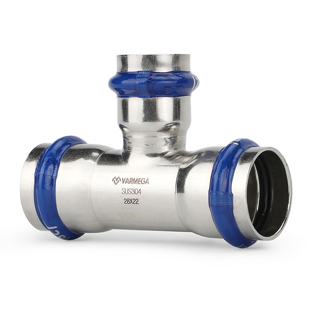 Тройник VARMEGA раструбный Inox Press переходной 28x22x28