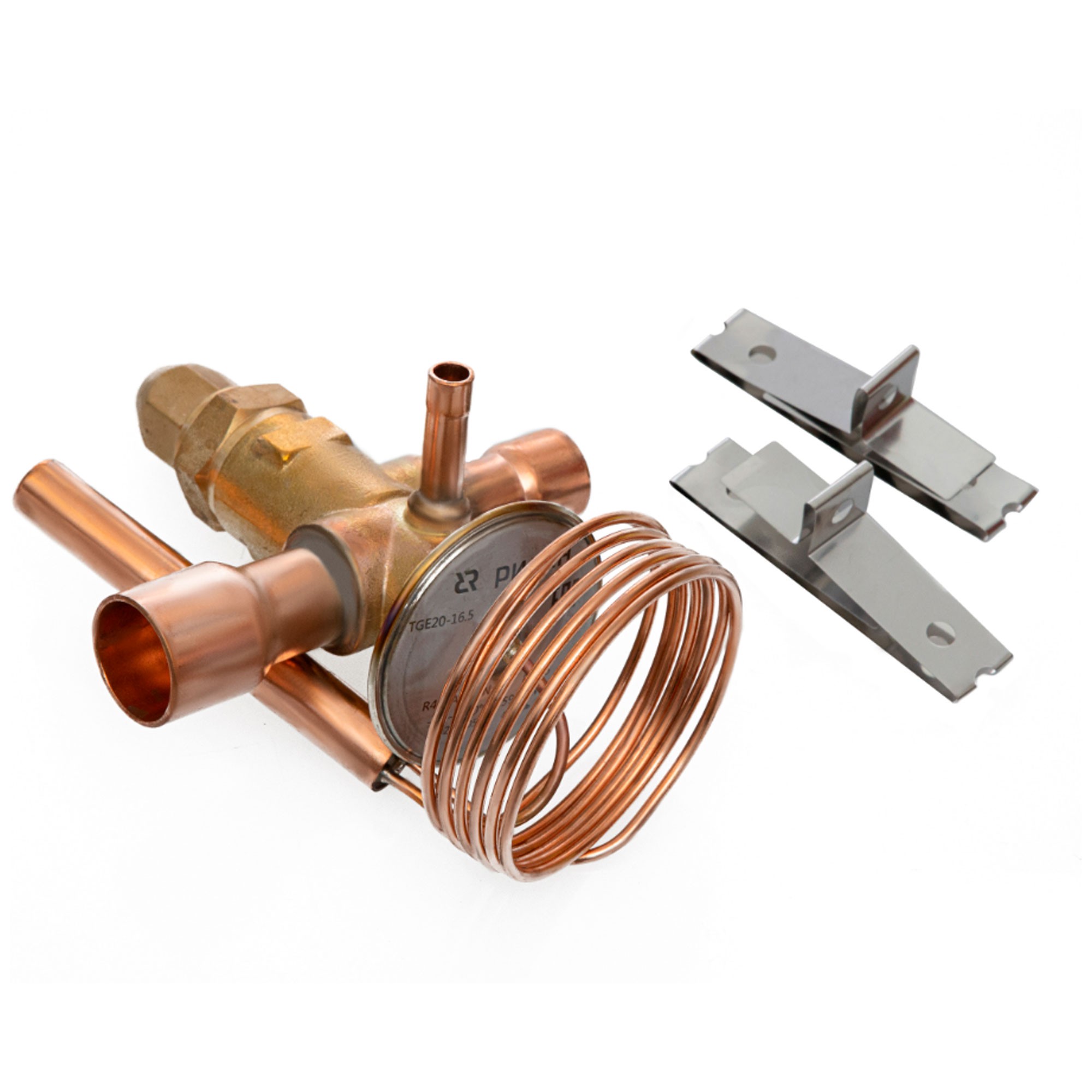 Клапаны терморегулирующие типа TGE предназначены для контроля перегрева хладагента на выходе из испарителя и поддержания его на заданном уровне. Клапаны подходят для применения в системах холодоснабжения, шоковой заморозки, охлаждения жидкости, тепловых насосах и системах кондиционирования работающих на хладагенте высокого давления R410A. Тип хладагента, для работы с которым предназначен клапан типа TGE, указан на шильдике трв.