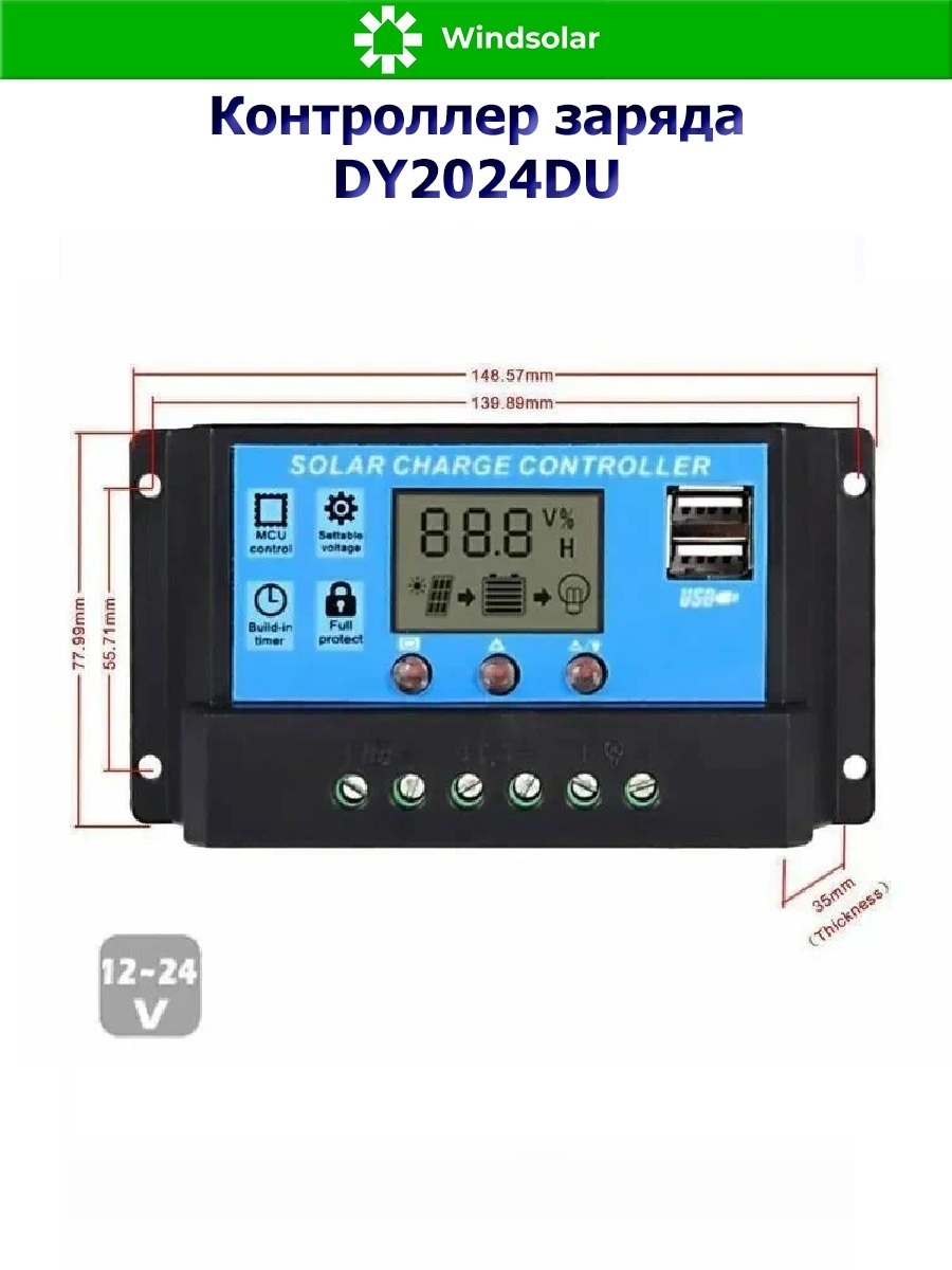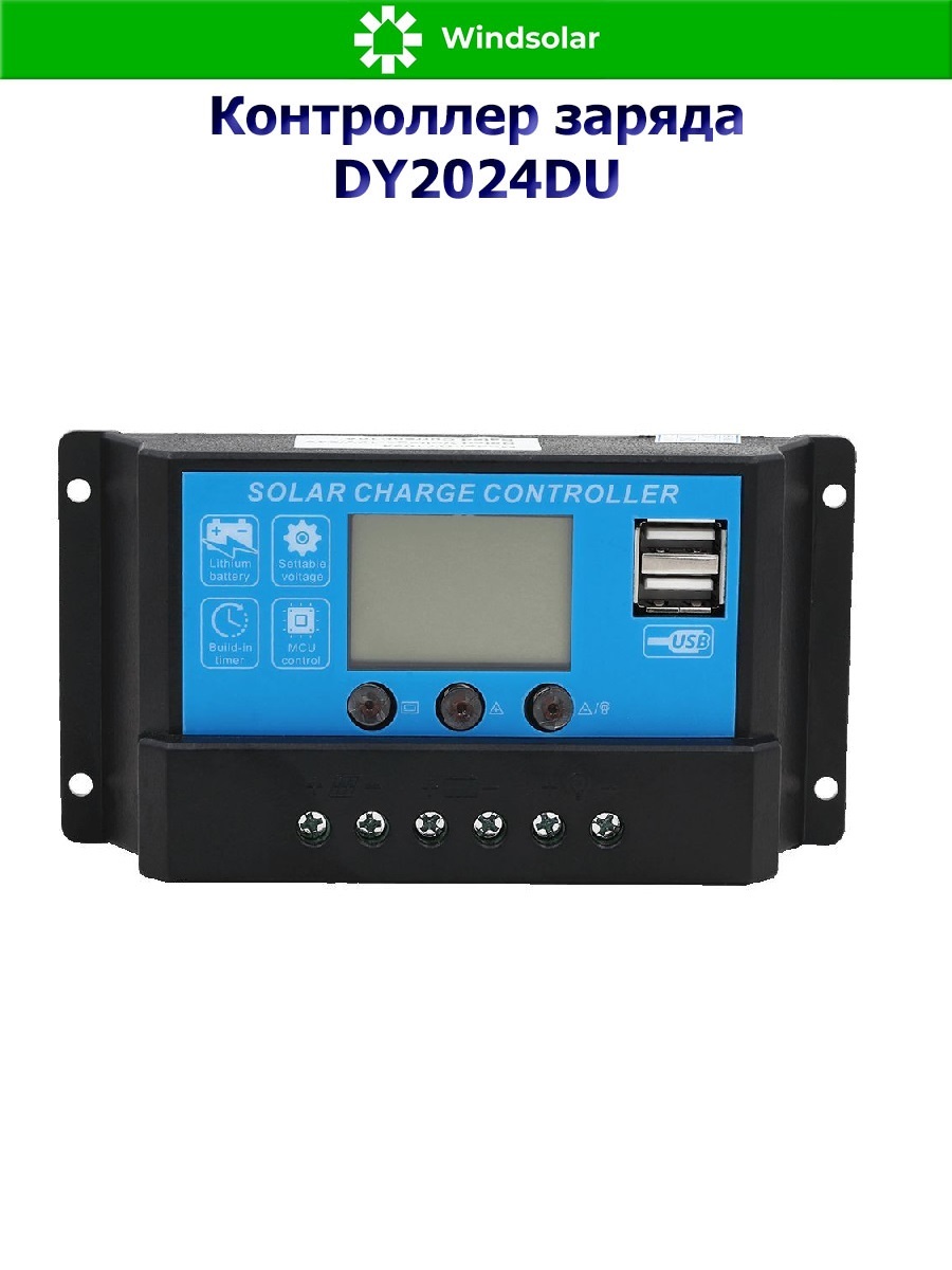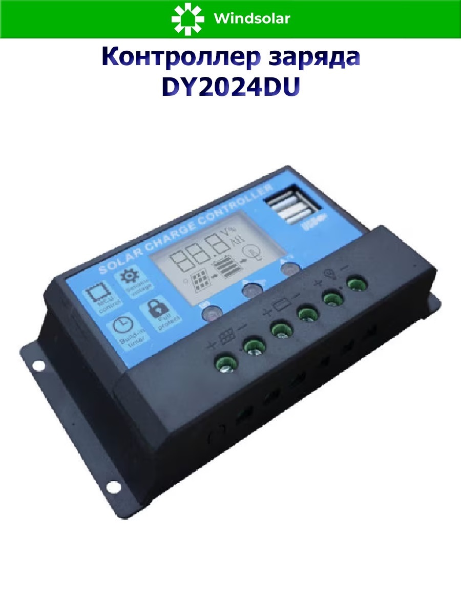 Контроллер заряда DY2024DU (20A, 12/24В) используется только для солнечных электростанций (солнечные батареи, аккумуляторы, инверторы). Аккумуляторные батареи заряжаются при помощи солнечных батарей.