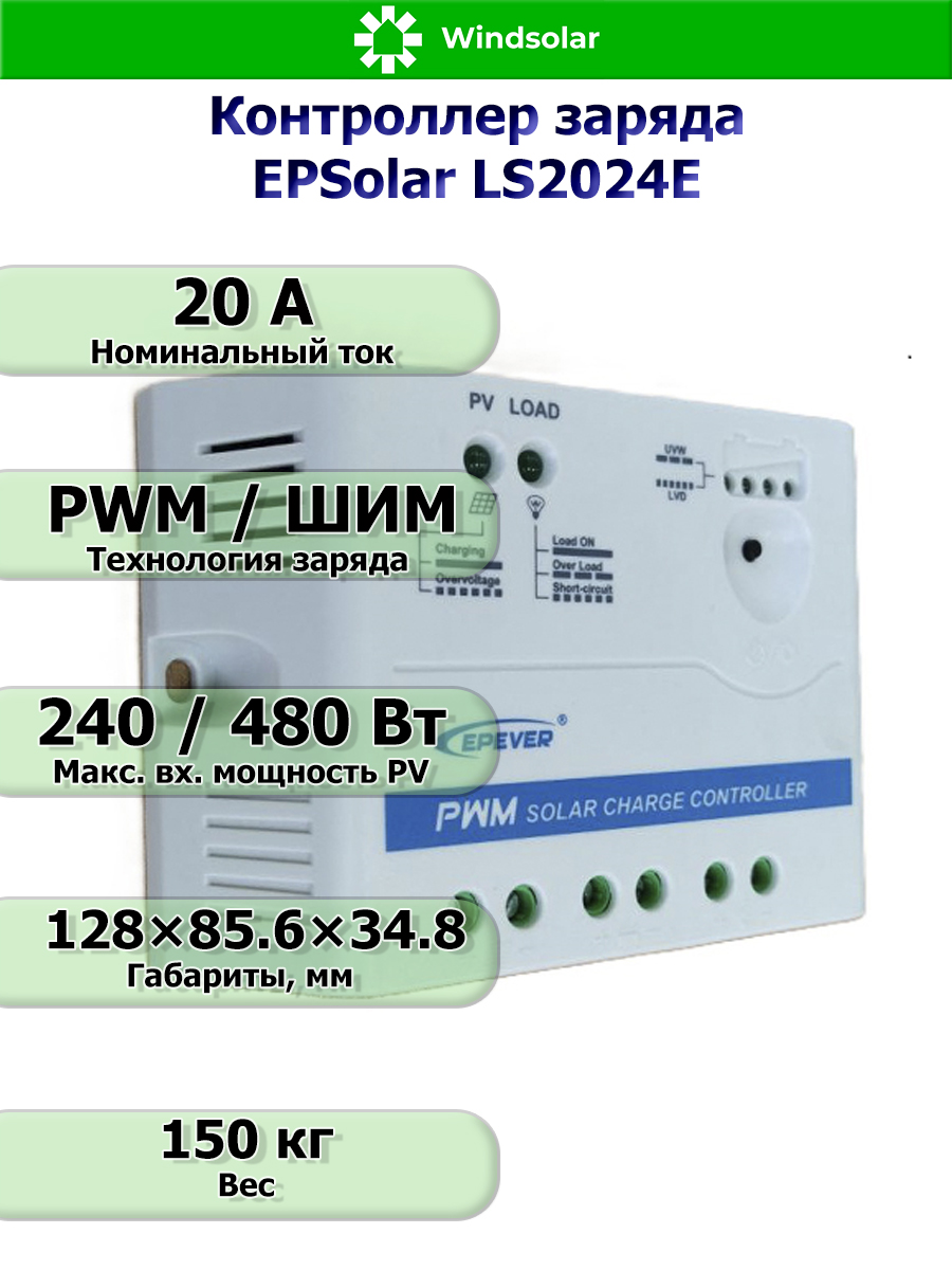 Контроллер EPSolar LS2024E улучшенный вариант серии LandStar, создан для небольших солнечных энергосистем. Полностью автоматическая работа с номинальным напряжением в системе 12/24В делают контроллер простым в использовании.