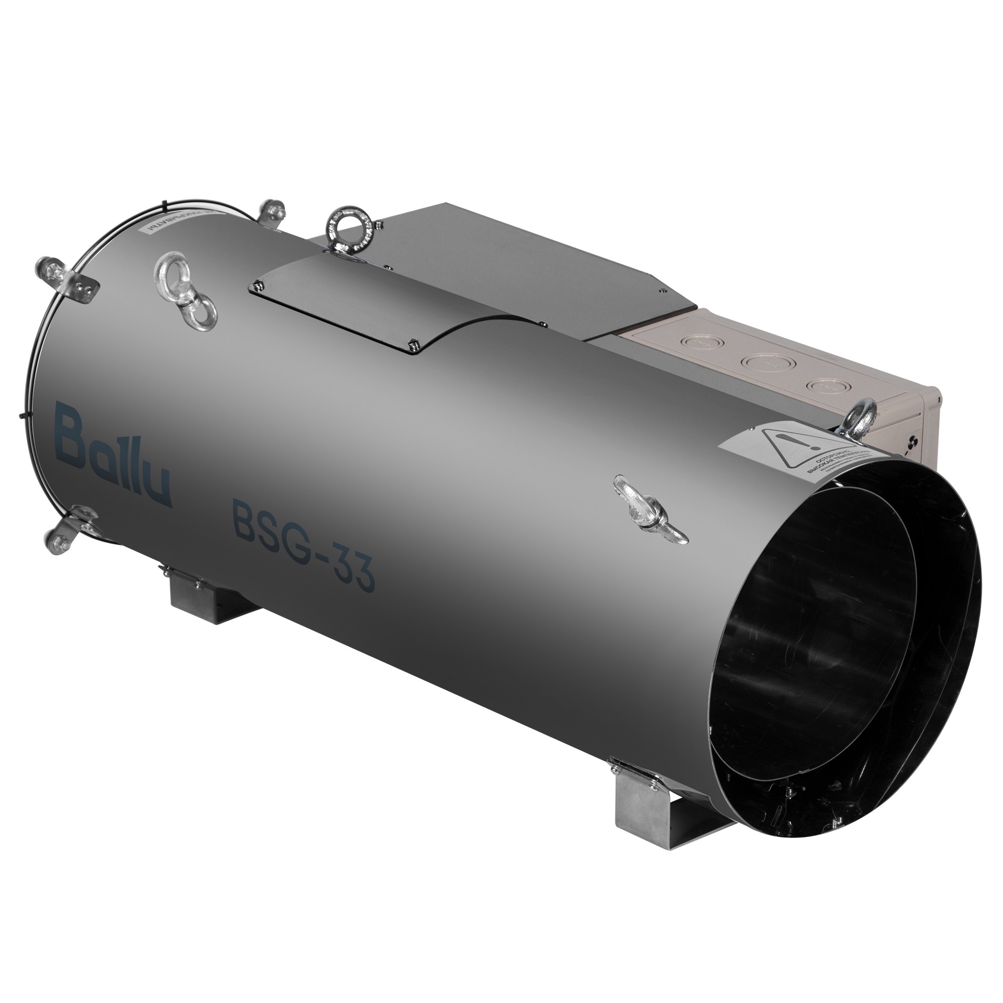 Подвесной газовый теплогенератор Ballu BSG-33 – это мощный профессиональный воздухонагреватель, работающий на природном газе (метане). Надежный прибор тепловой мощностью 33 кВт предназначен для безопасного, надежного и эффективного отопления птицефабрик, помещений для хранения и сортировки сельскохозяйственной продукции, цехов и т.п.
