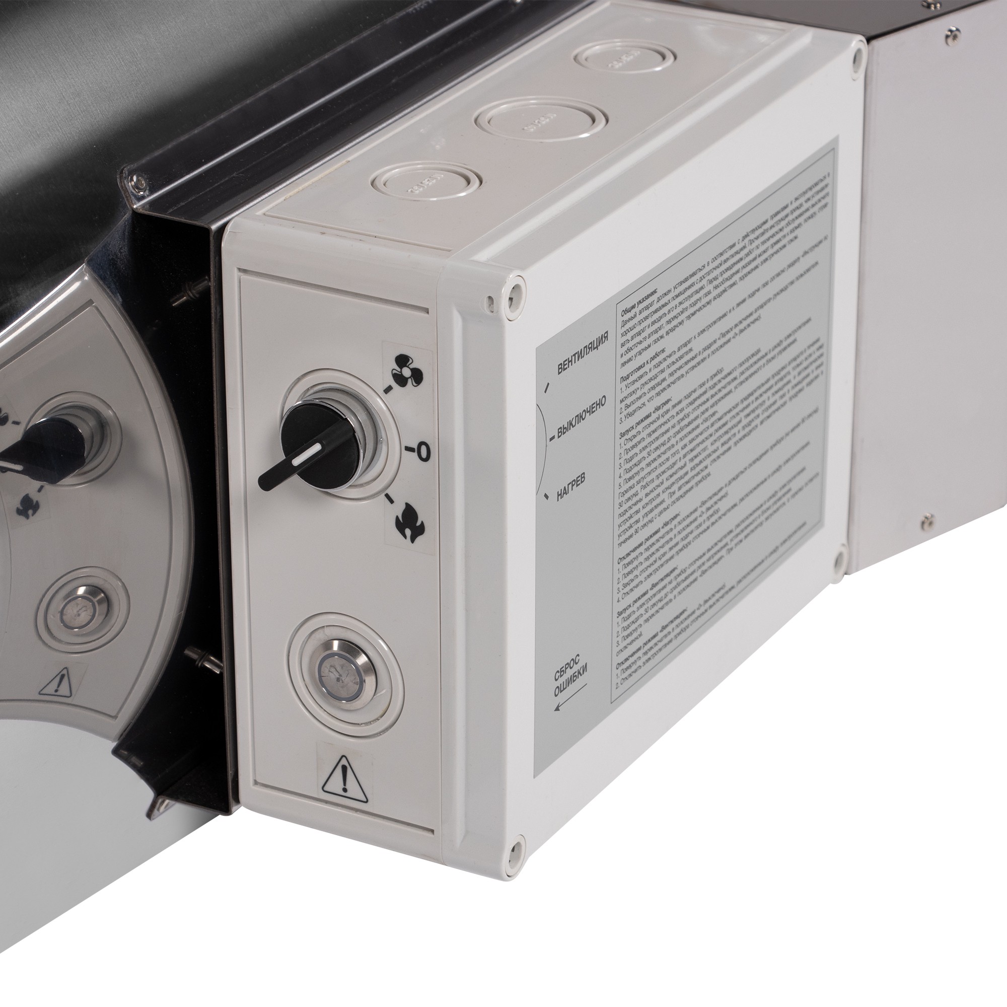 Аппарат можно эксплуатировать только, если к нему подключены выносной комнатный термостат, поддерживающий требуемую температуру в помещении, и автоматическое устройство контроля концентрации взрывоопасных веществ и продуктов сгорания в помещении и иные устройства управления (не входят в комплект поставки и приобретаются отдельно).