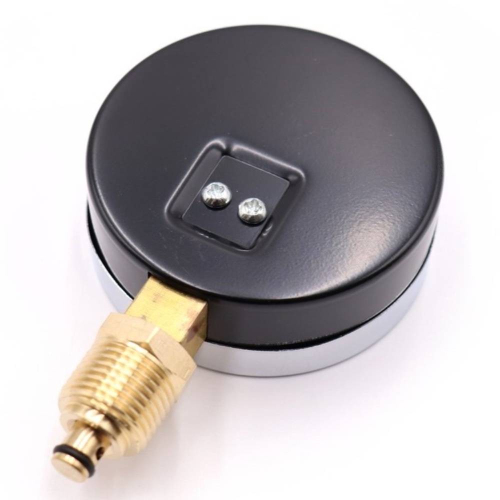 Термоманометр имеет вертикальное соединение из латуни с резьбой 1/2″. Корпус изготовлен из металла устойчивого к коррозии и окрашен высококачественной эмалью черного цвета для дополнительной защиты от коррозии.
