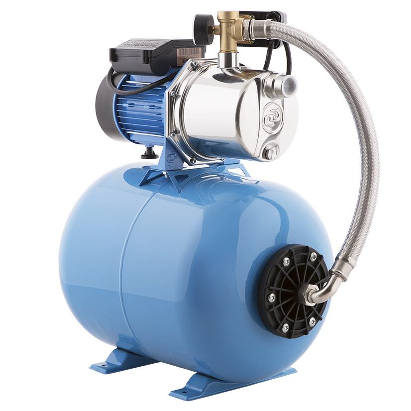 Джамбо 70/50 Н представляет собой поверхностный насос со встроенным эжектором, а также реле давления, гидроаккумулятор, манометр и соединительную арматуру.