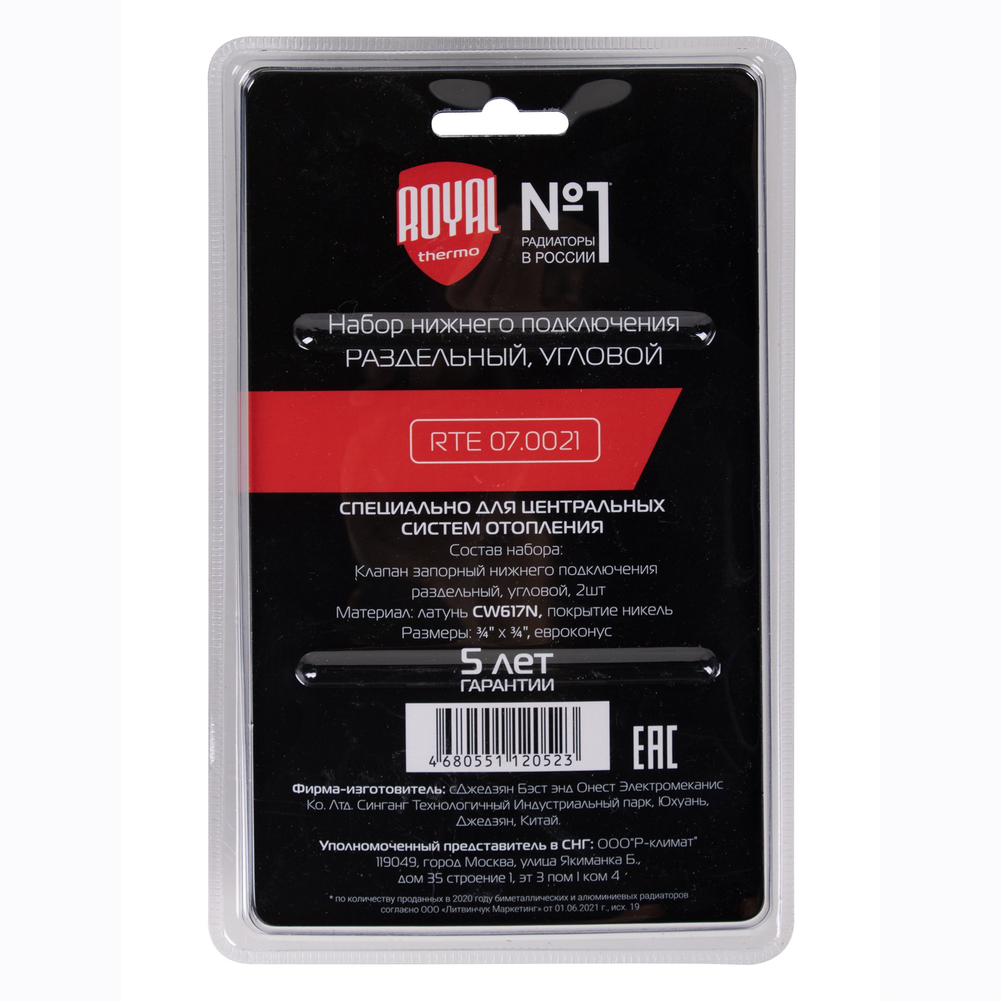 Набор нижнего подключения Royal Thermo угловой раздельный 3/4х3/4ЕК