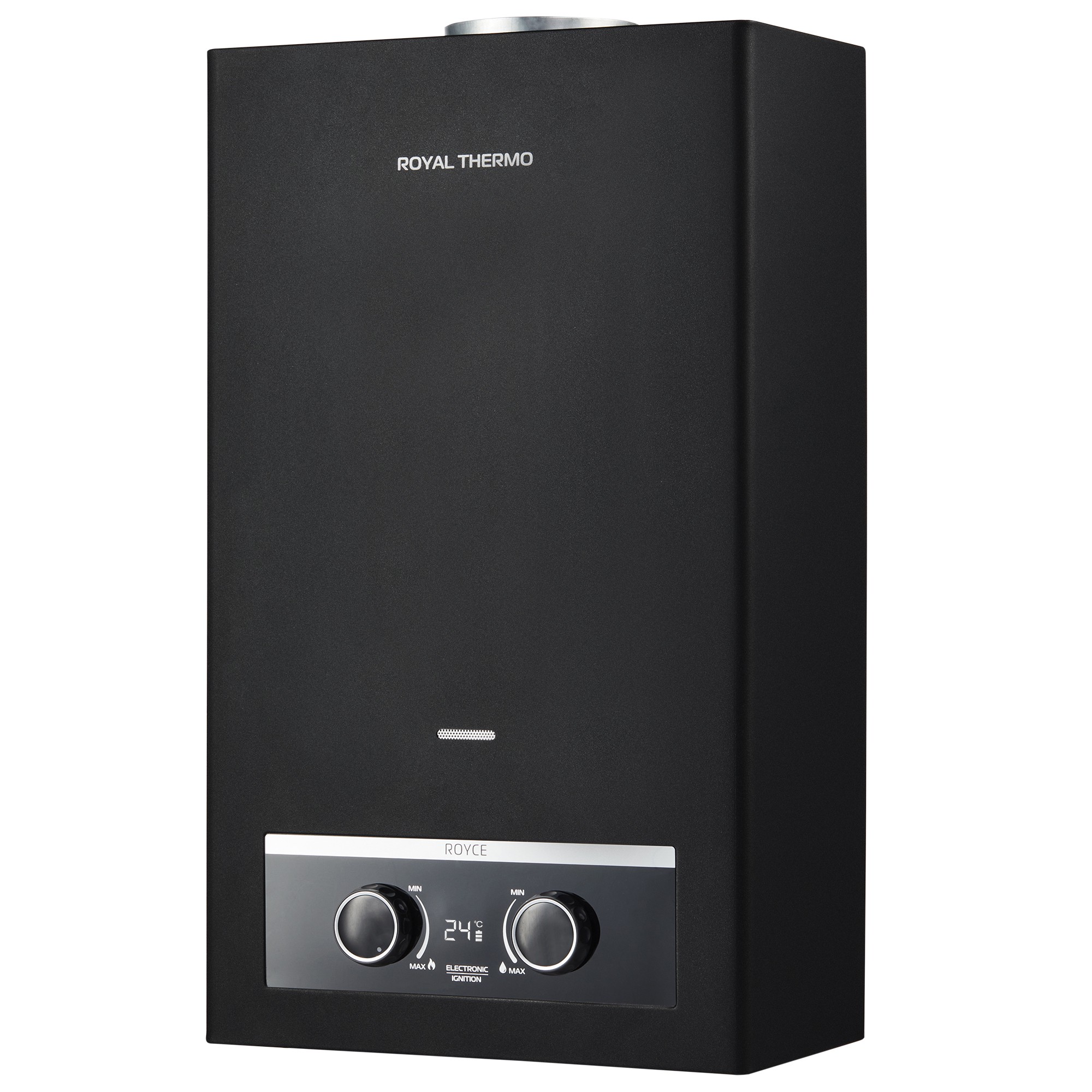 Флагманская серия газовых водонагревателей Royce, в конструкцию которых положены самые передовые технологии, обладает высокой производительностью и долговечностью. Приборы оснащены удобным и безопасным электронным розжигом, а также информативным современным цифровым дисплеем, который отображает температуру нагрева воды, заряд батареи и индикацию пламени на горелке.
