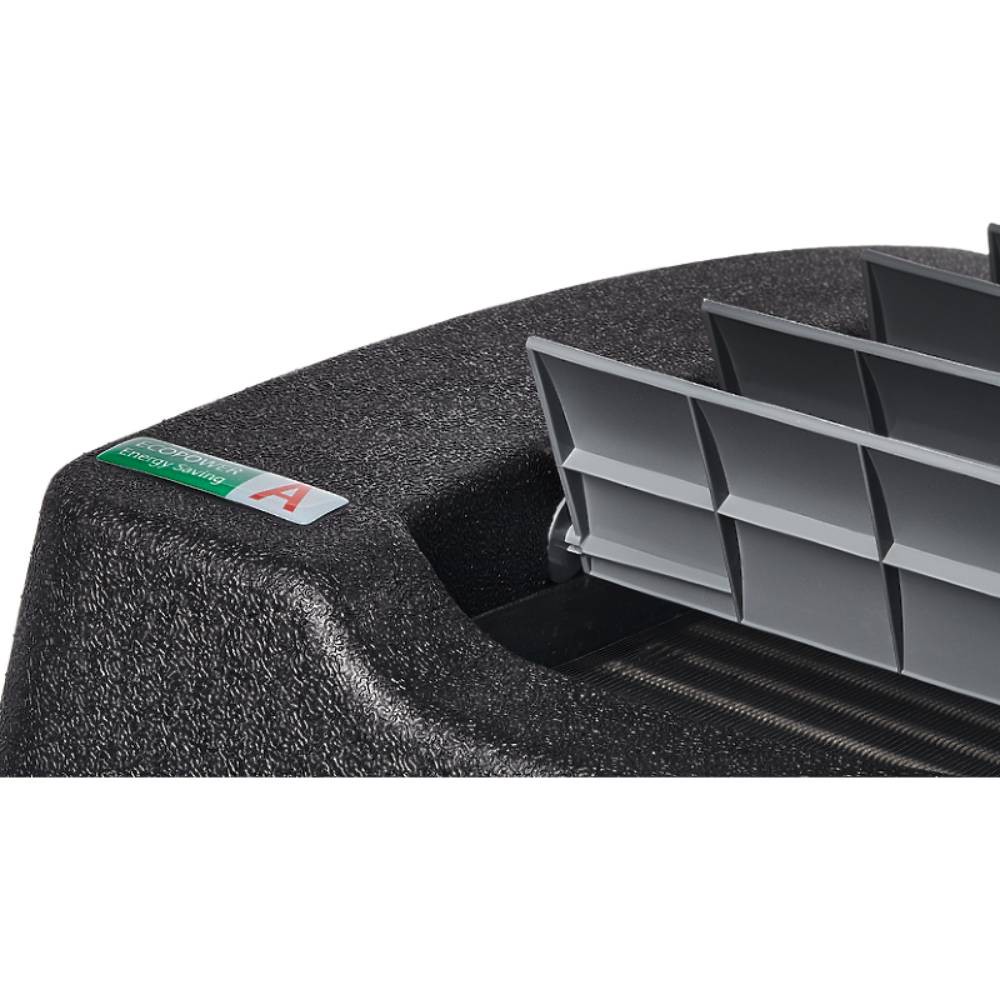 Осевой вентилятор диаметром 400 мм. создает воздушный поток длиной 12 метров и обеспечивает максимальную производительность до 2400 м3/ч.