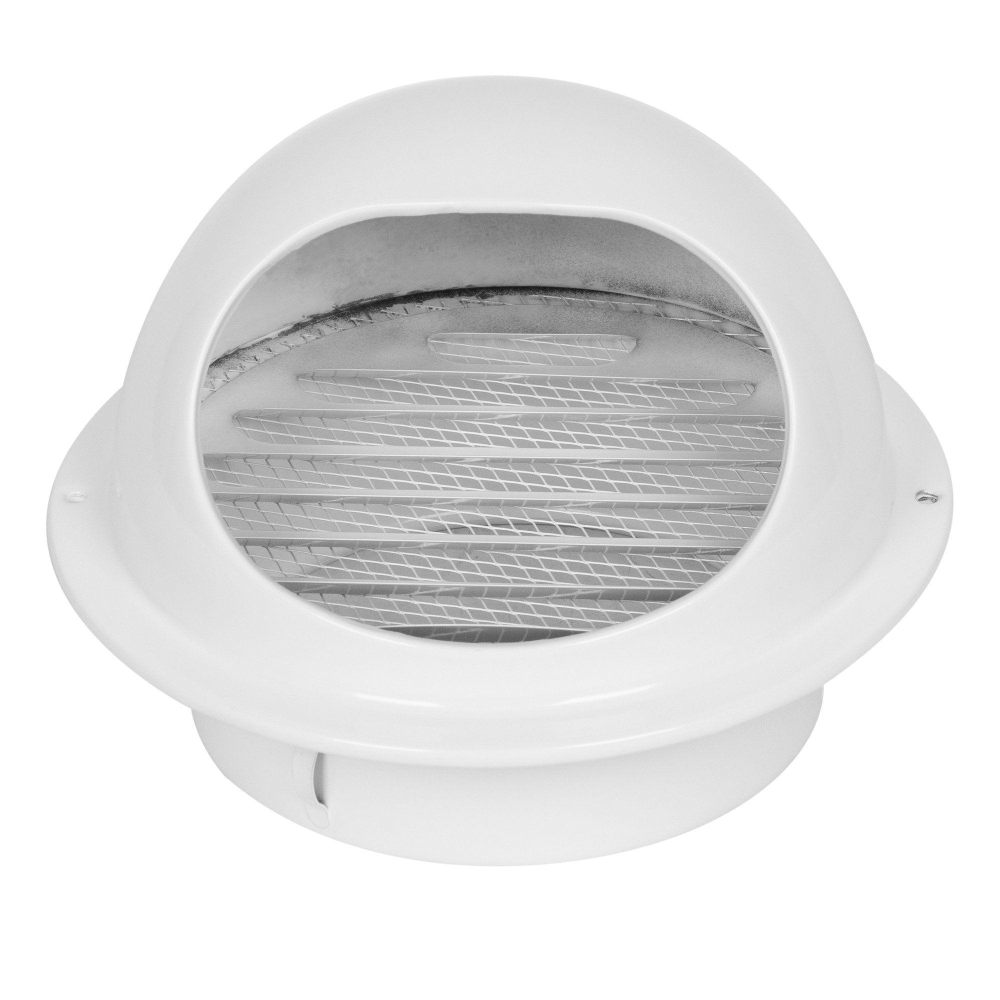 Решетка предназначена для защиты круглых канальных вентиляторов и другого оборудования от попадания осадков и посторонних предметов извне. Монтируется на наружных стенах в вентиляционные каналы круглого сечения. Жалюзи должны быть направлены вниз. Решетка изготовлена из оцинкованной стали, состоит из неподвижные жалюзи с рамкой и козырьком, окрашена в белый цвет.